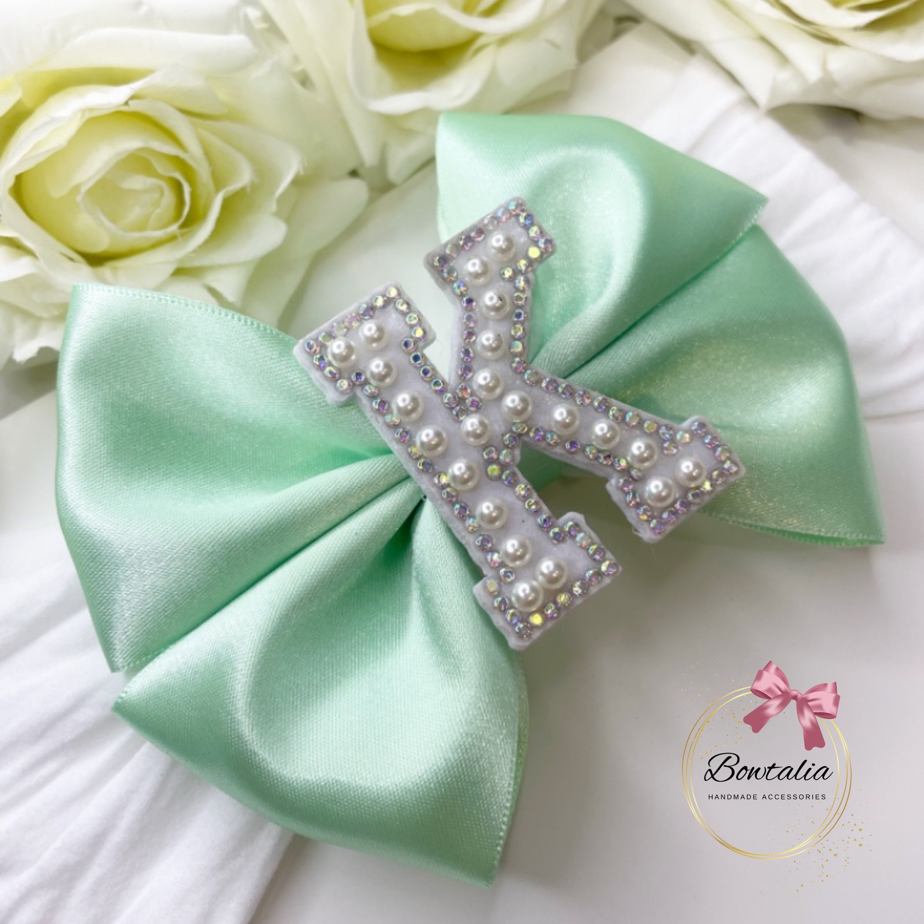 Please choose your preferred bow colour and Pearl initial when ordering.