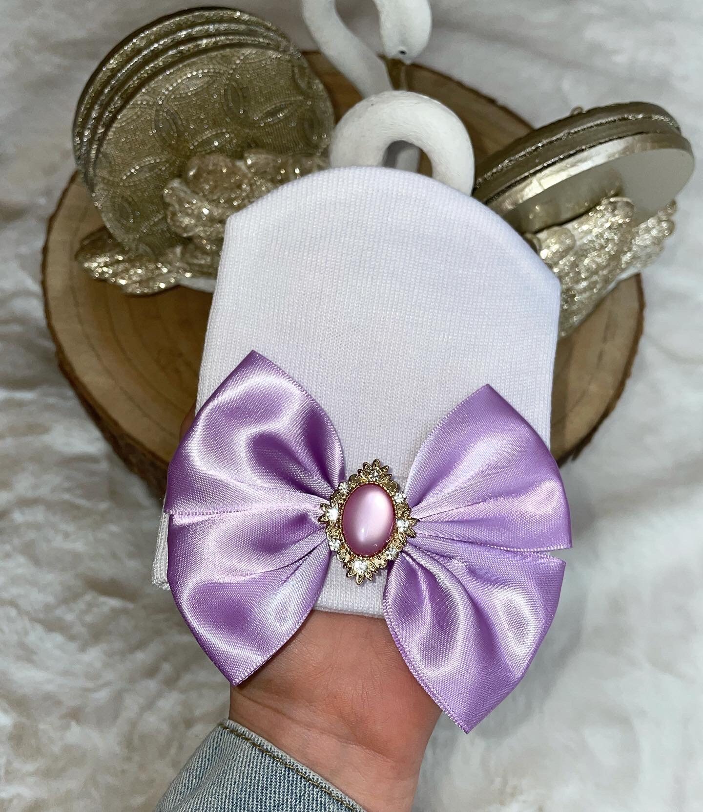 Stunning newborn bow hats. Any embellishment can be added to any bow colour.. the choice is yours. Please choose preferred style/colour when placing your order!