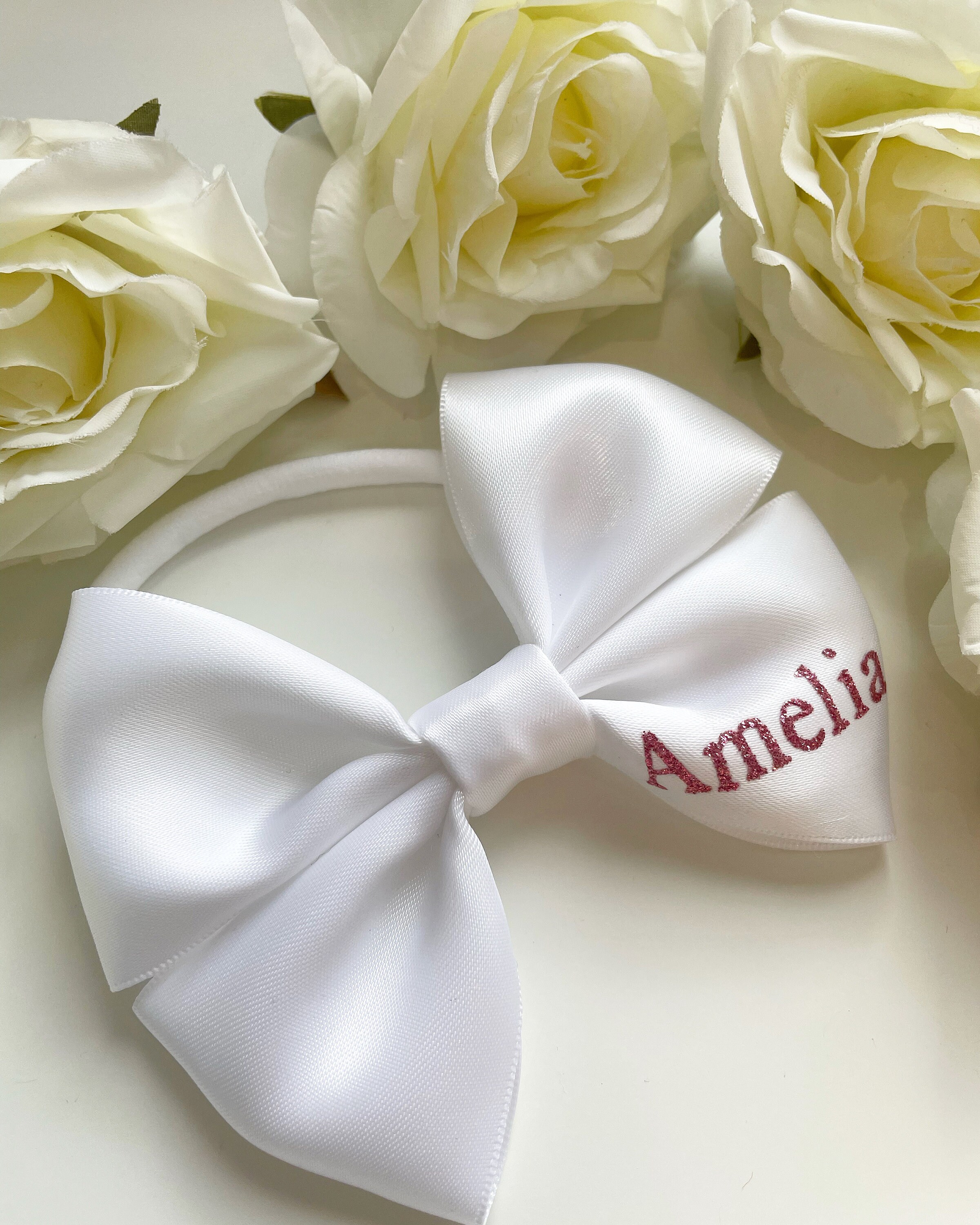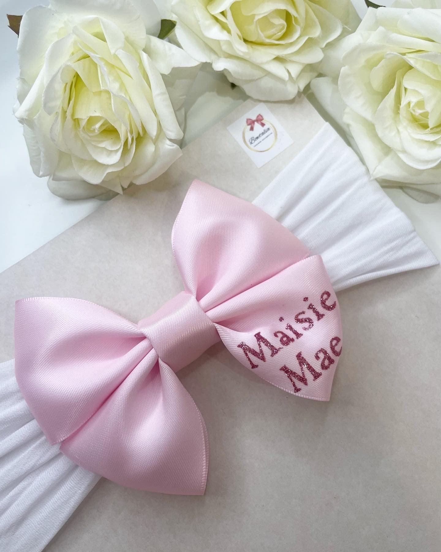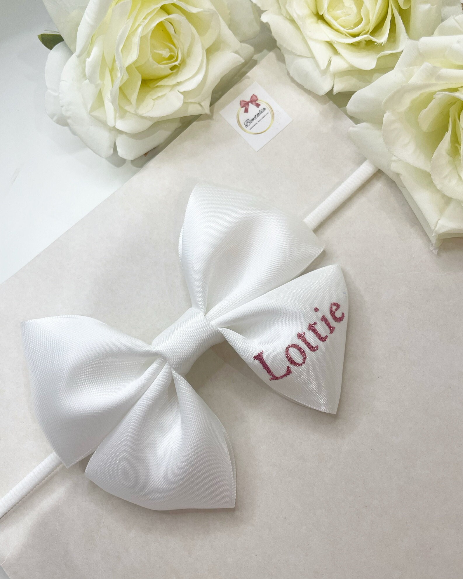 Beautiful personalised bow on a stretchy soft nylon headband.