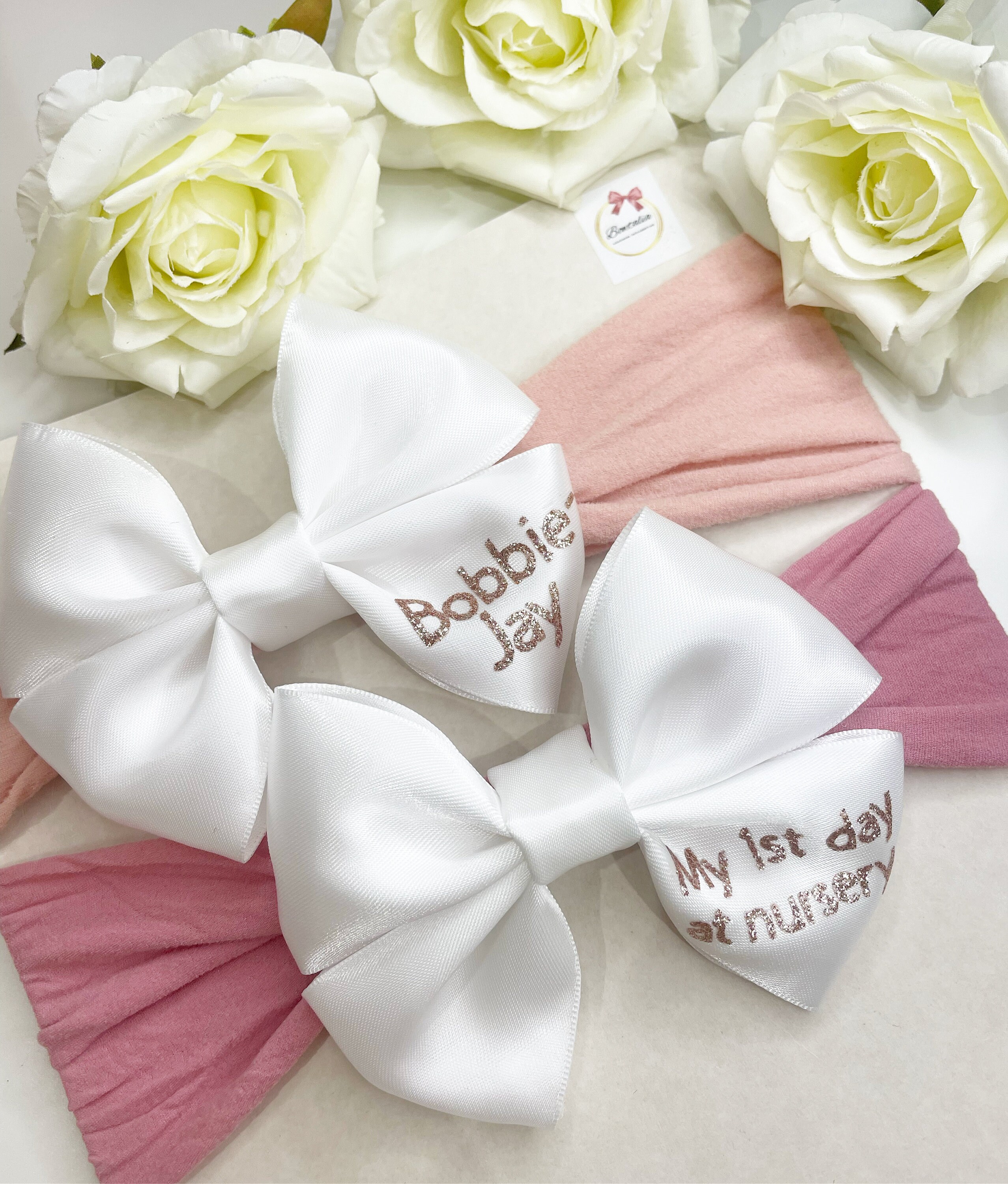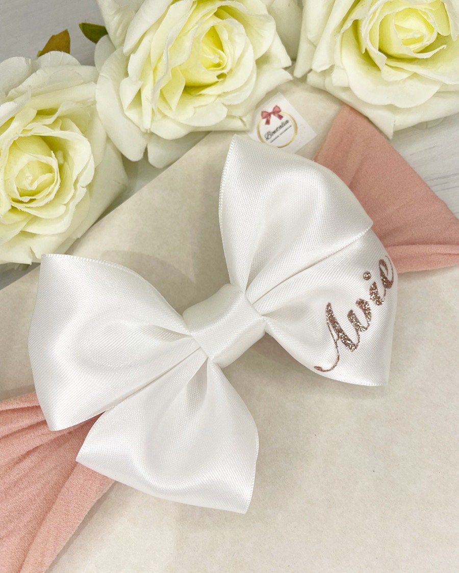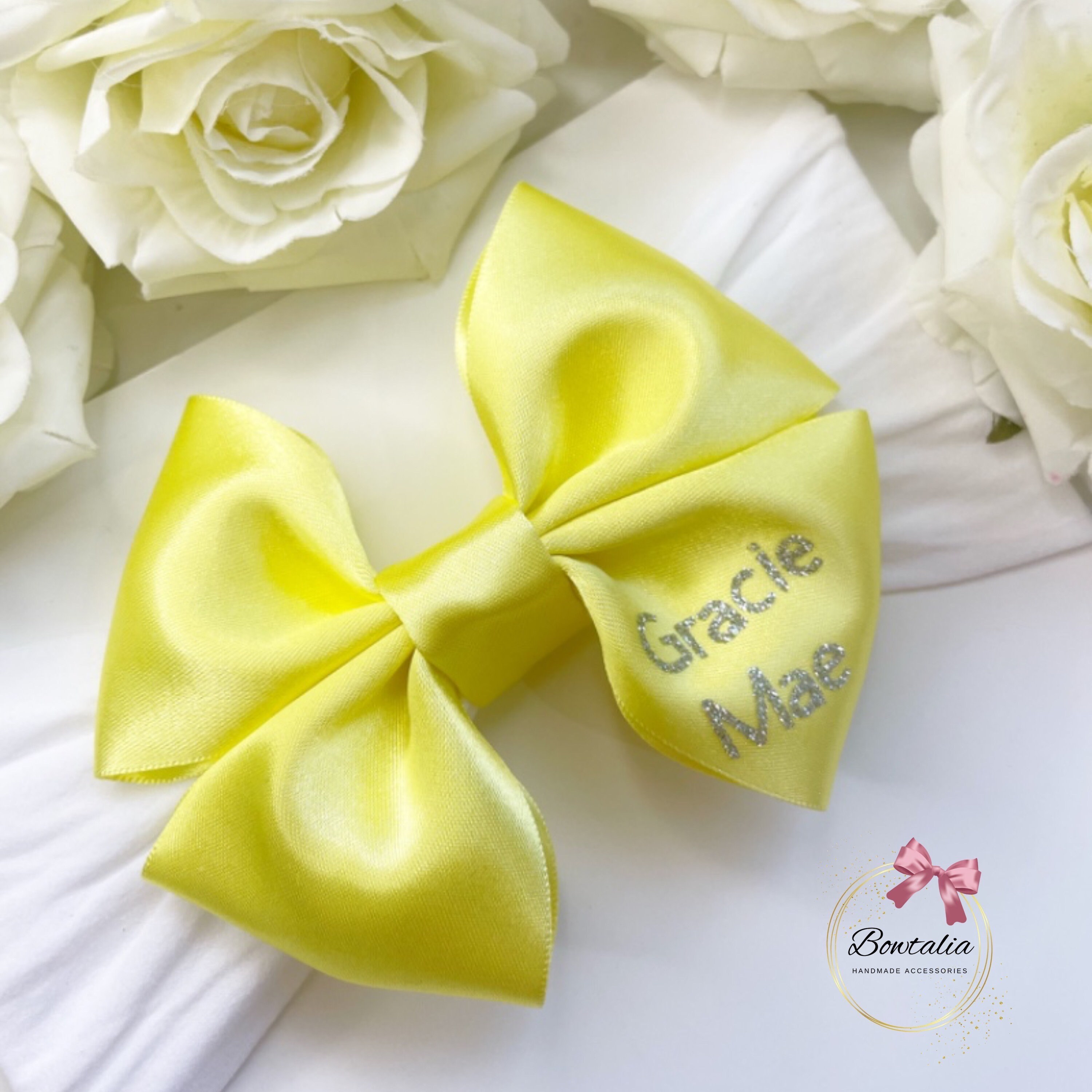 Beautiful personalised bow on a stretchy soft nylon headband.