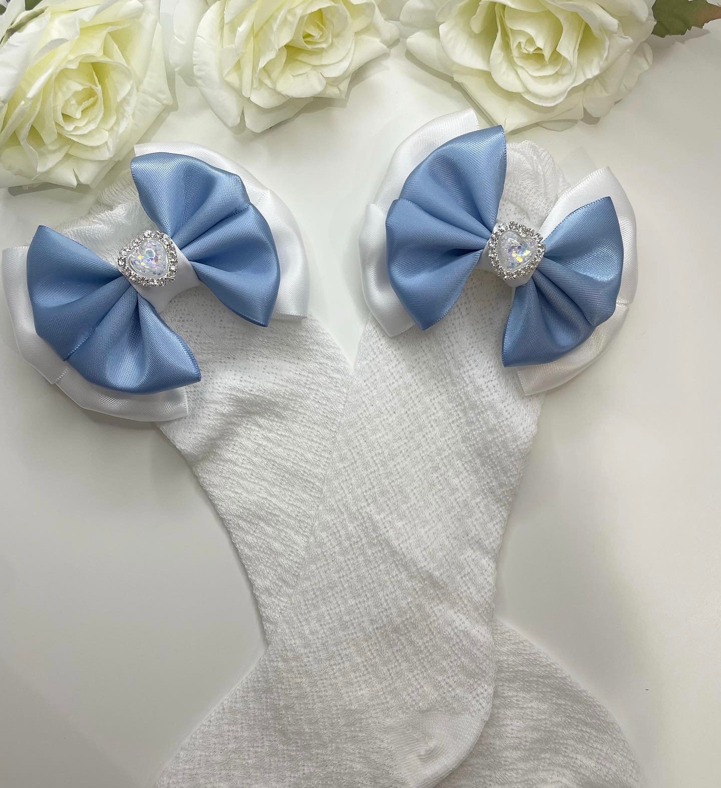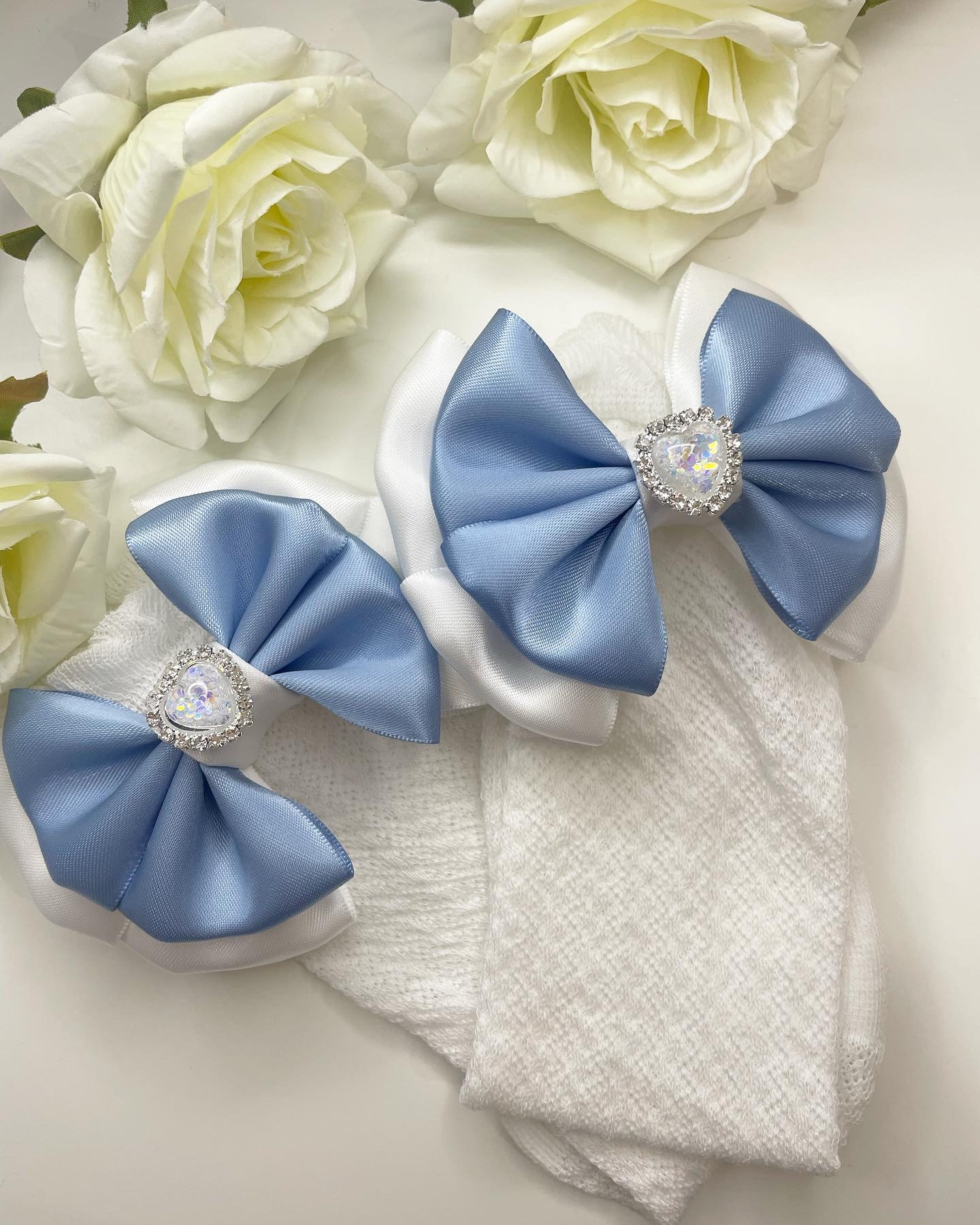 Beautiful knee high socks with a handmade double layered bow, perfect to accessorise an outfit. Soft and breathable material, perfect for summer!
