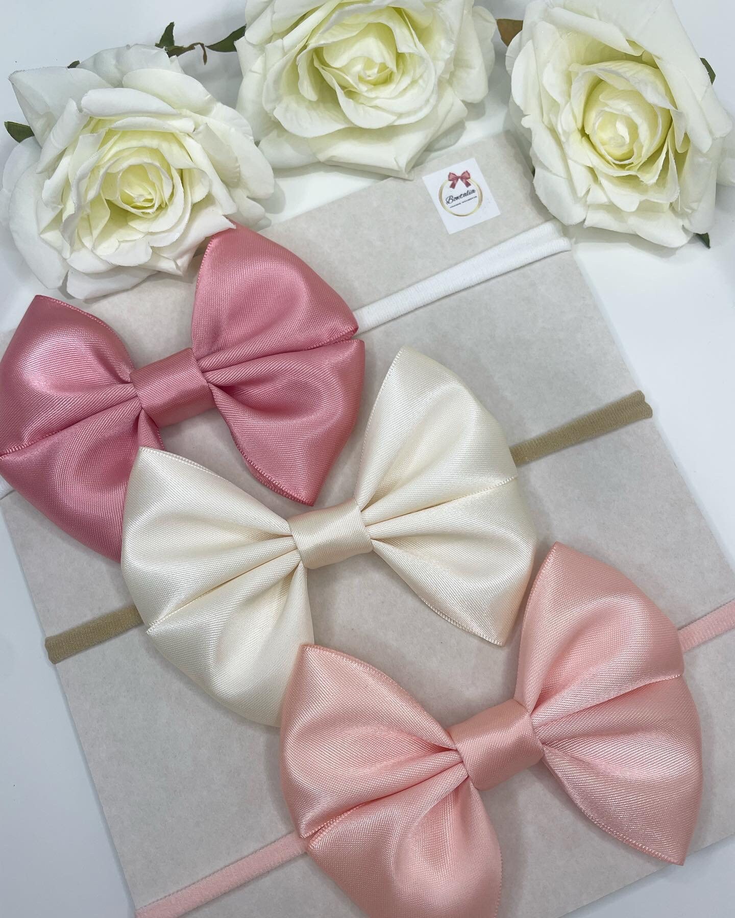 The summer mini bow bundle. Each bow is attached to a thin nylon headband - colours are matched as shown in the advertisement photo.