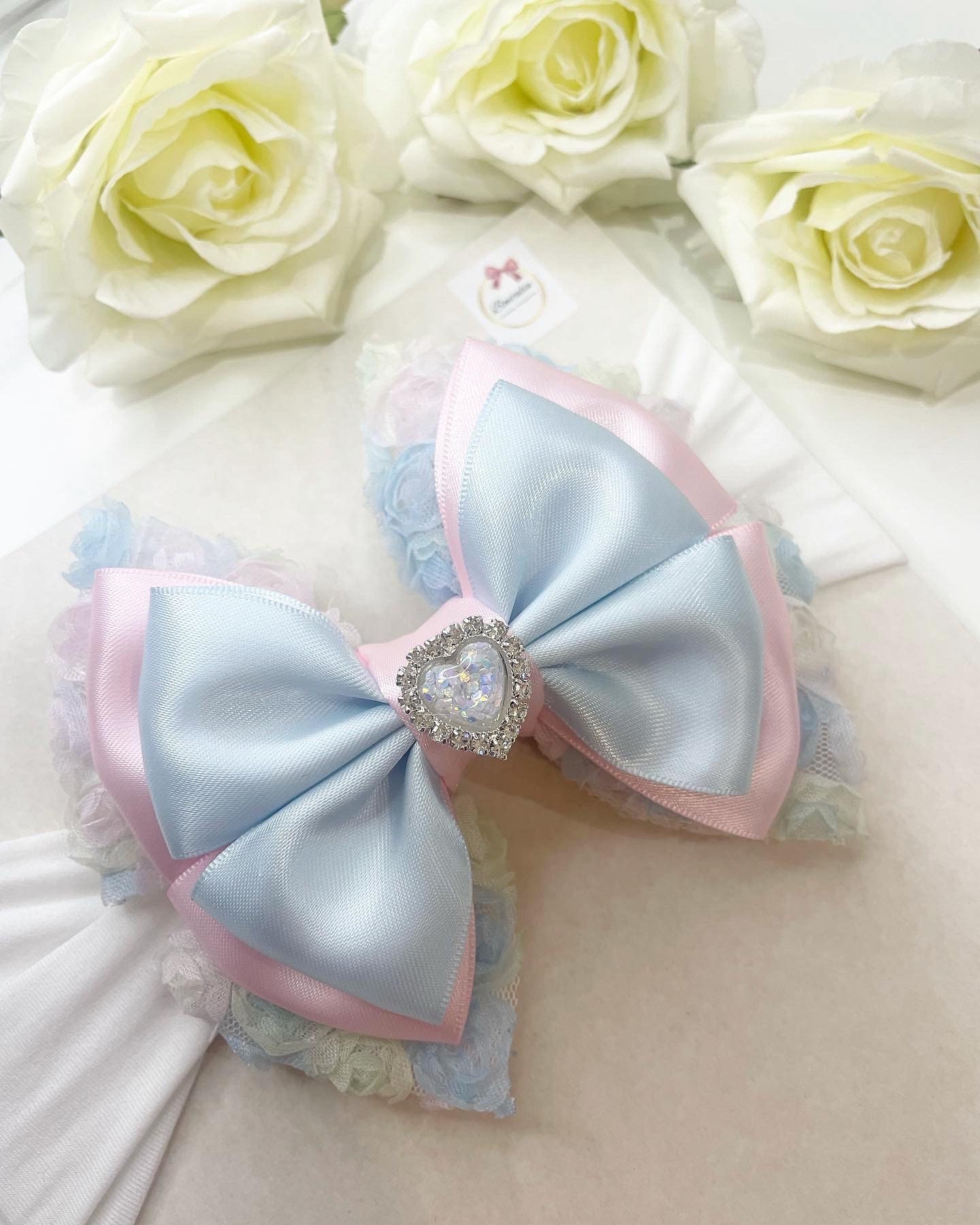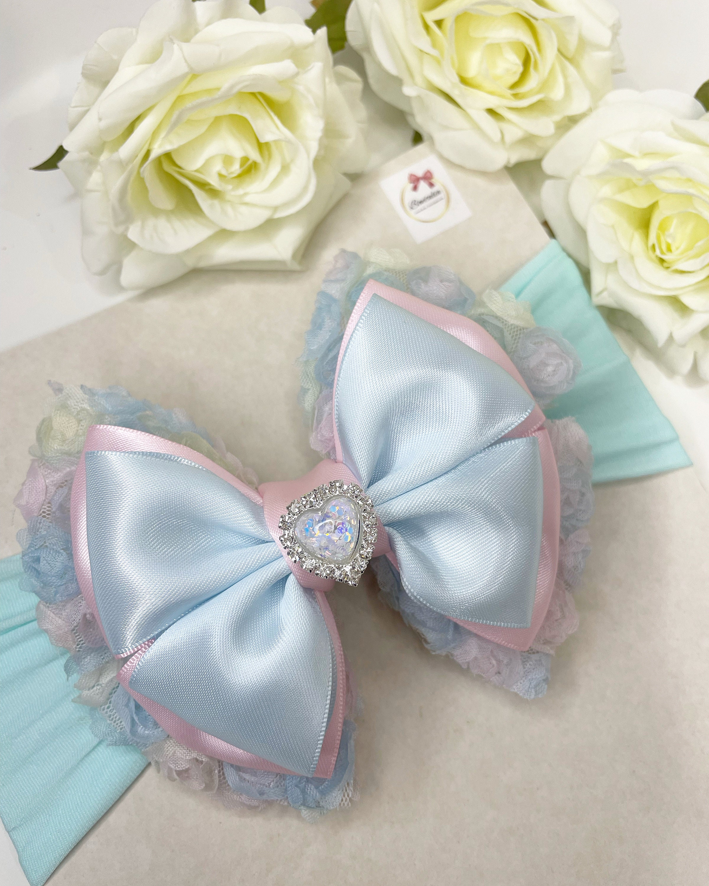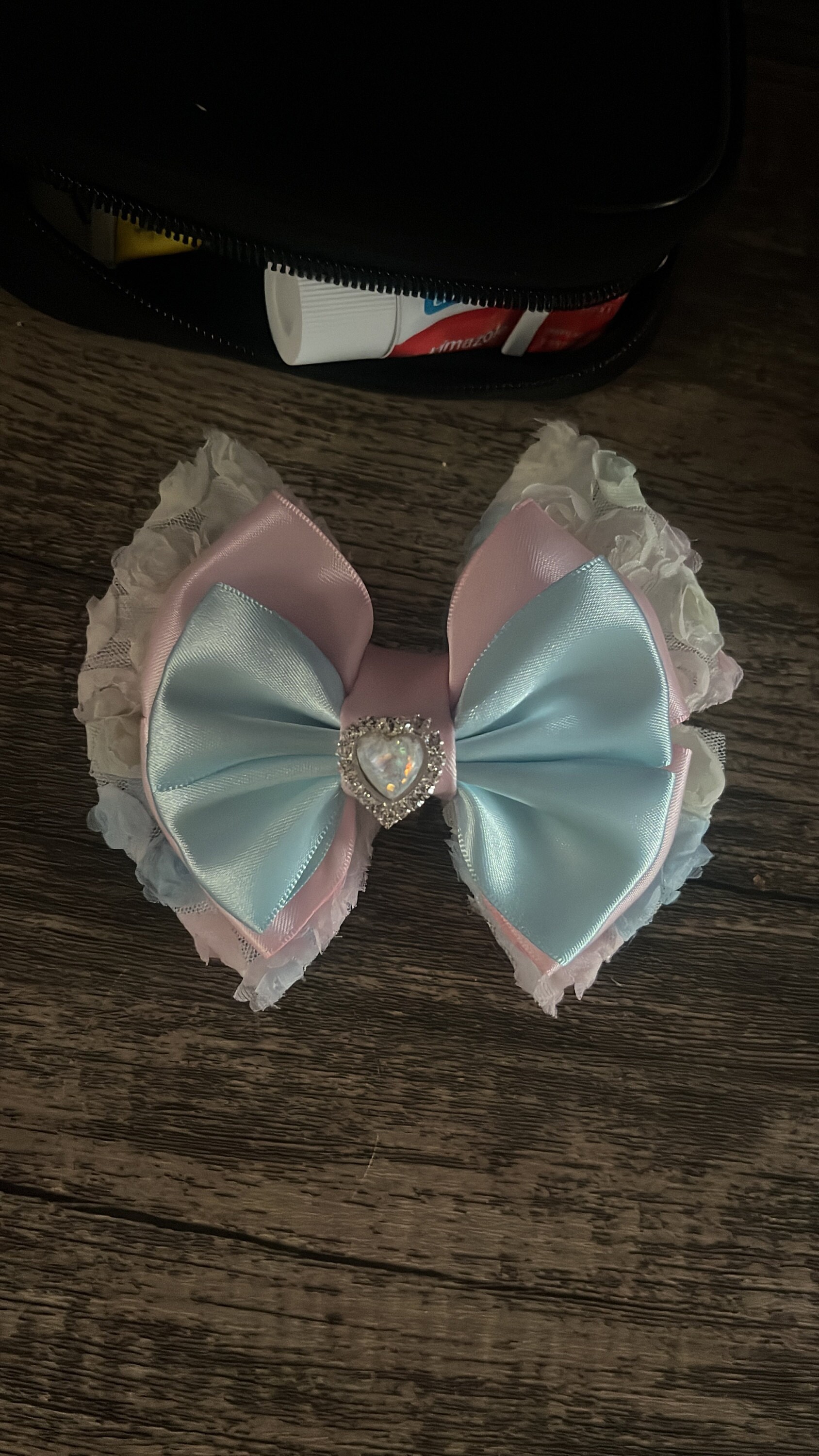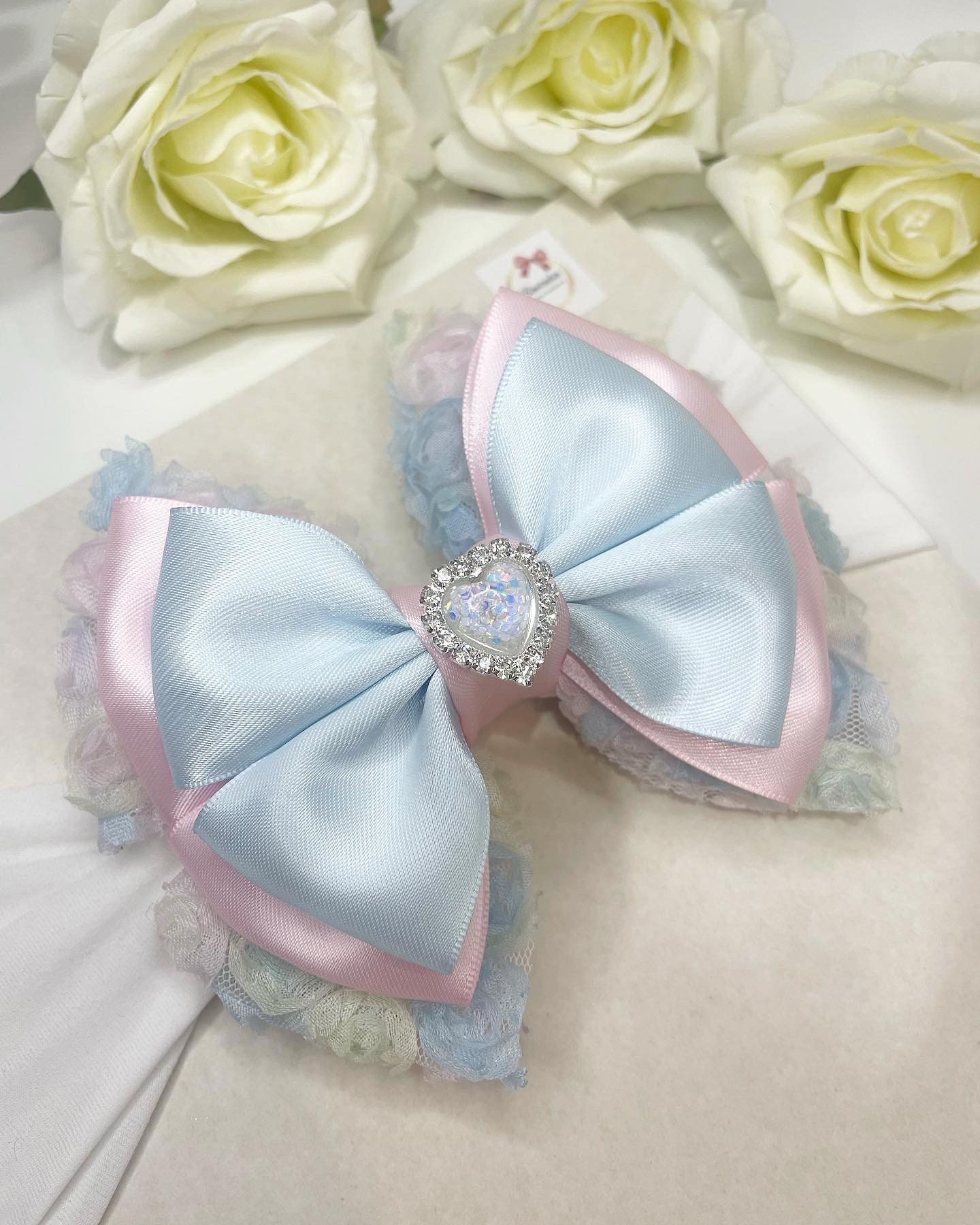 A beautiful unique 3 layer bow made from beautiful silky ribbon and tulle material.