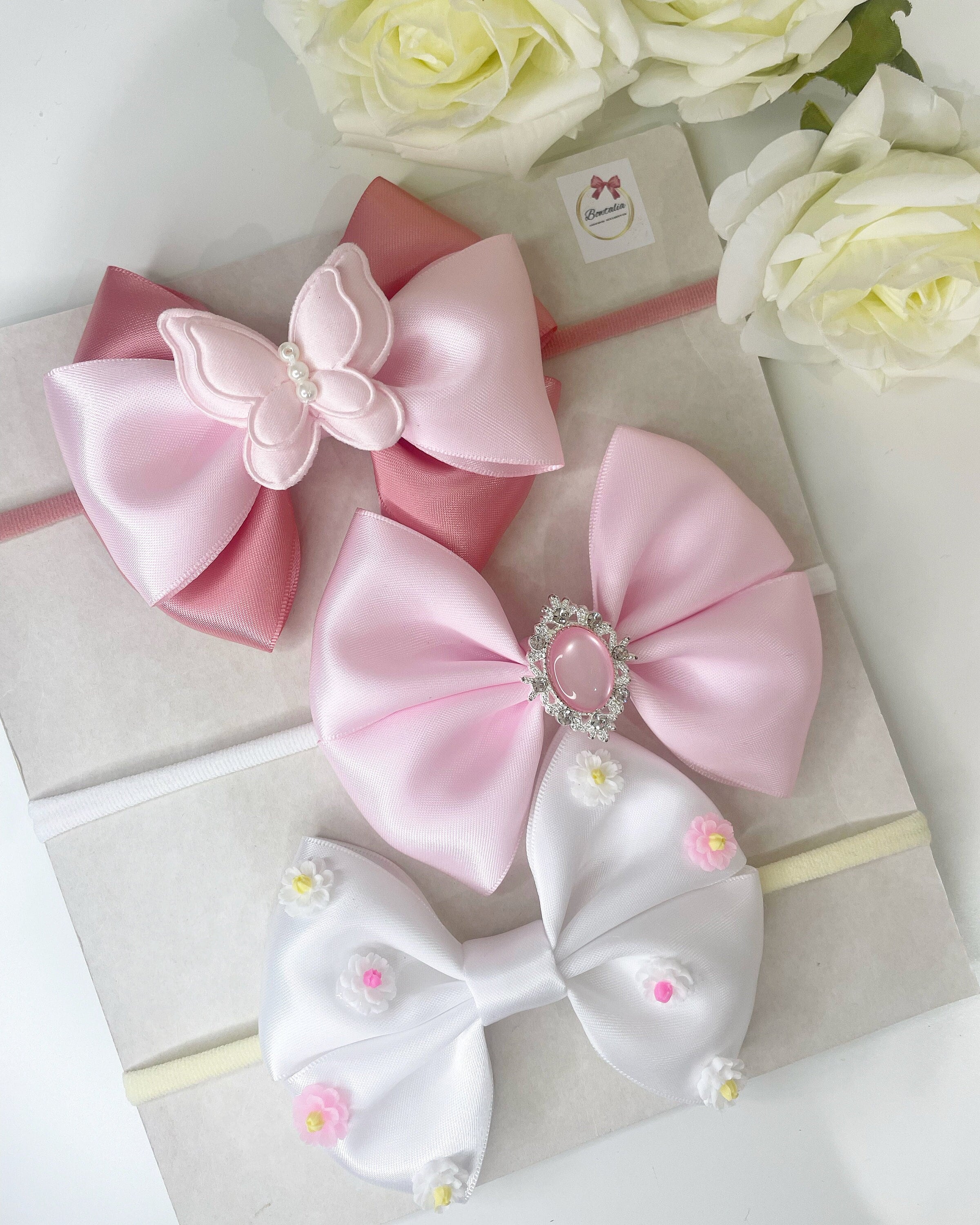 Beautiful handmade bows from the summer collection. So pretty to accessorise a summer outfit.