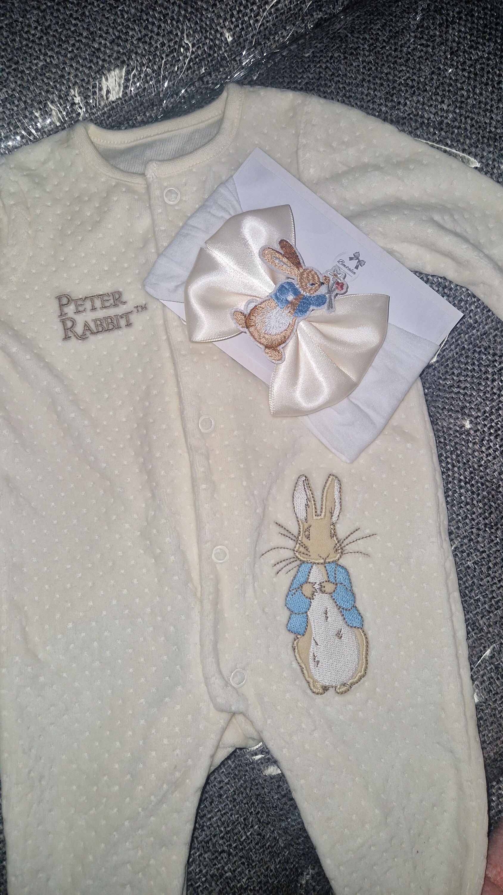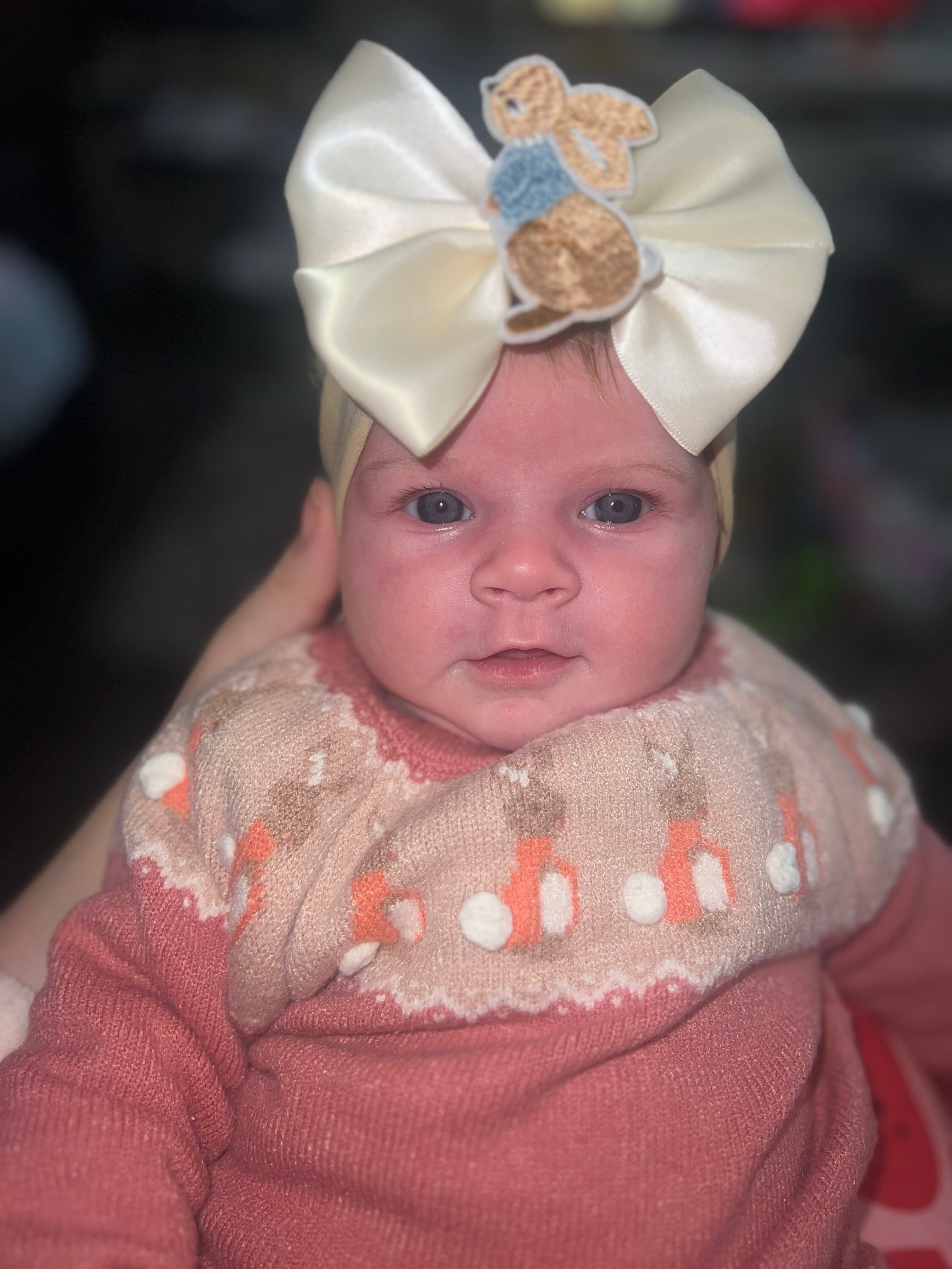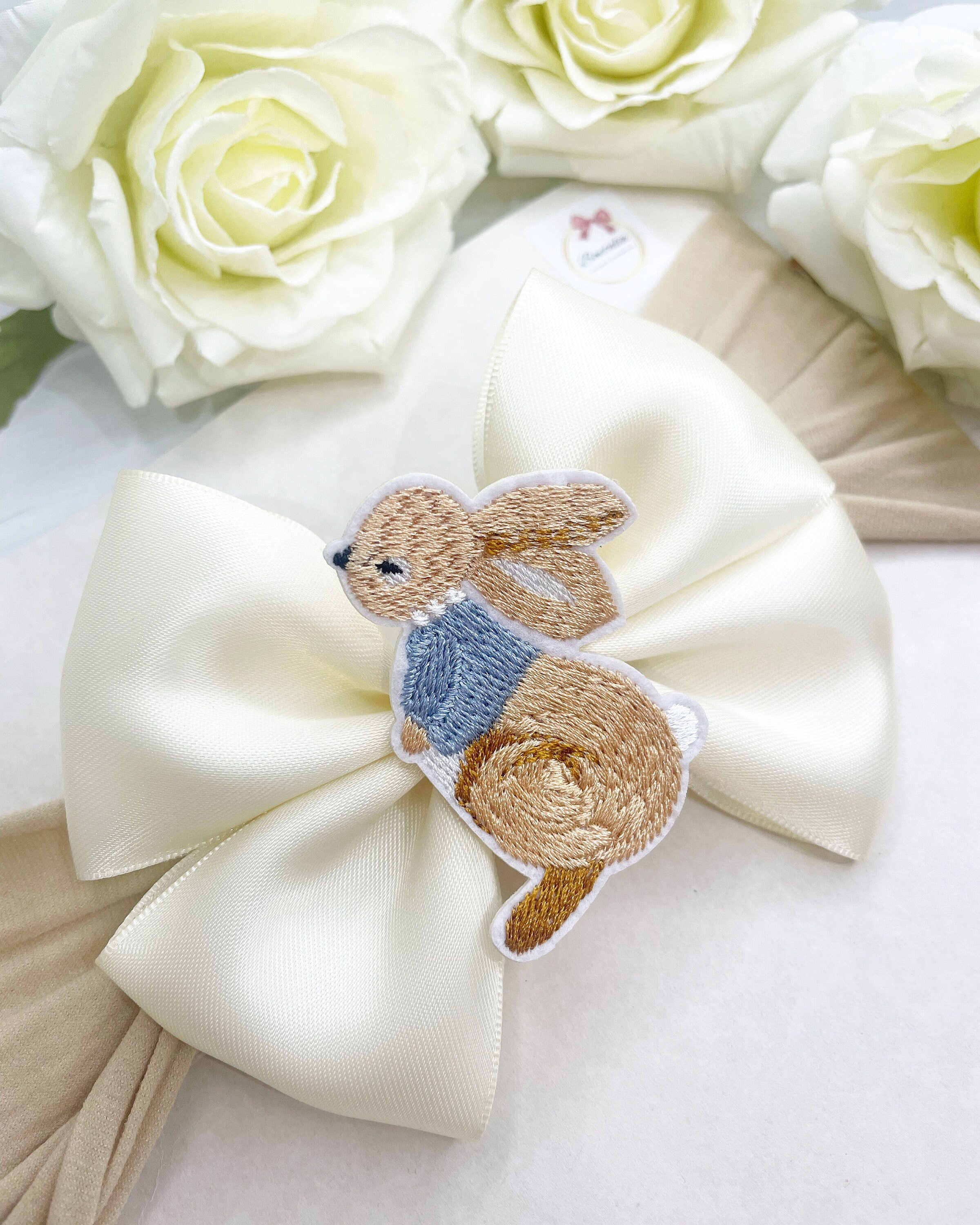 Beautiful cream bow with a Rabbit embroider patch centre. So pretty to accessorise an outfit.