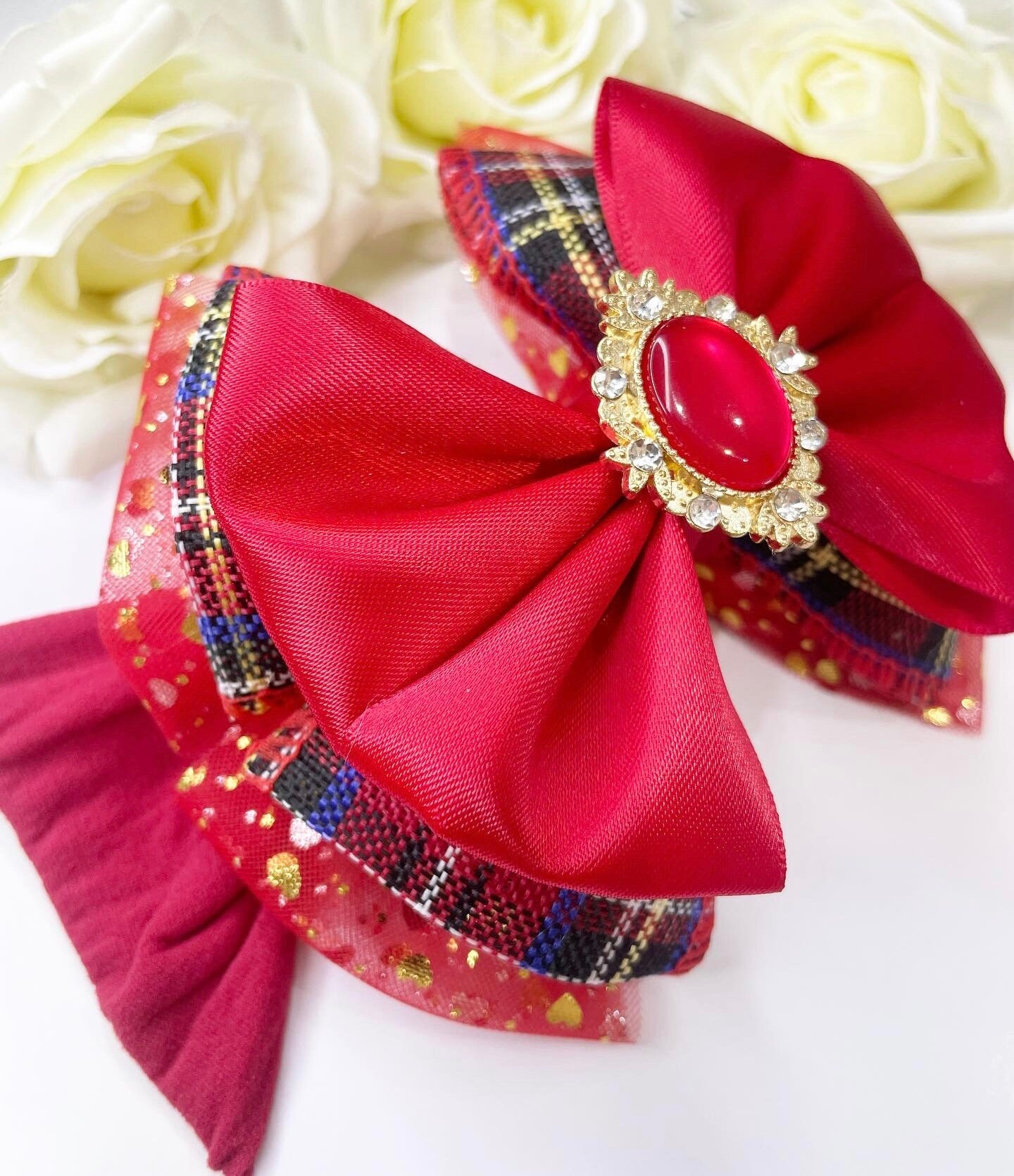 Stunning handmade Christmas bow. Perfect to match Christmas outfits.