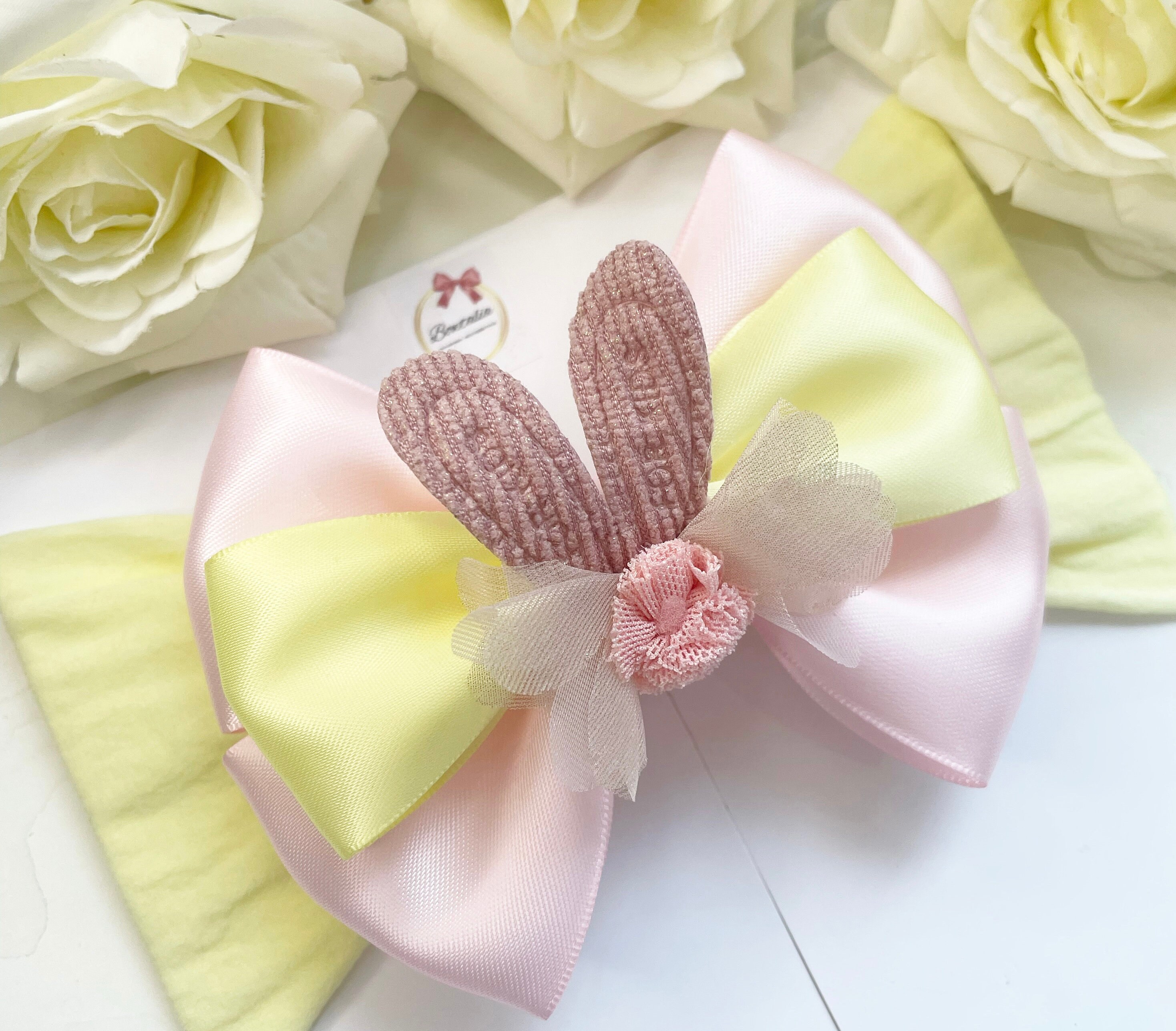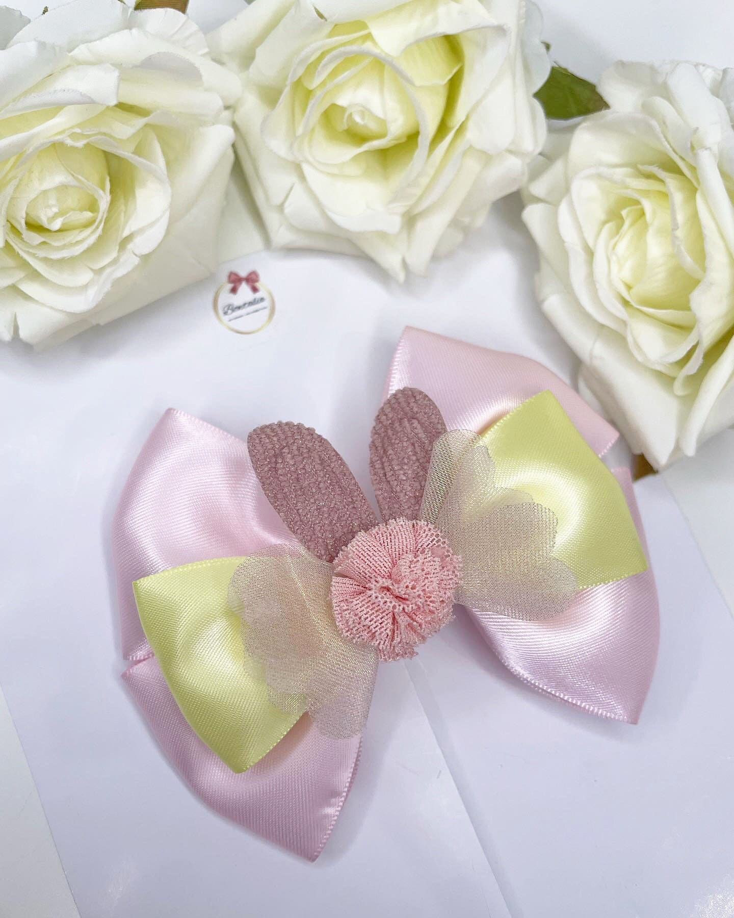 Beautiful double layered bow with a bunny ears centre. Perfect for Easter.