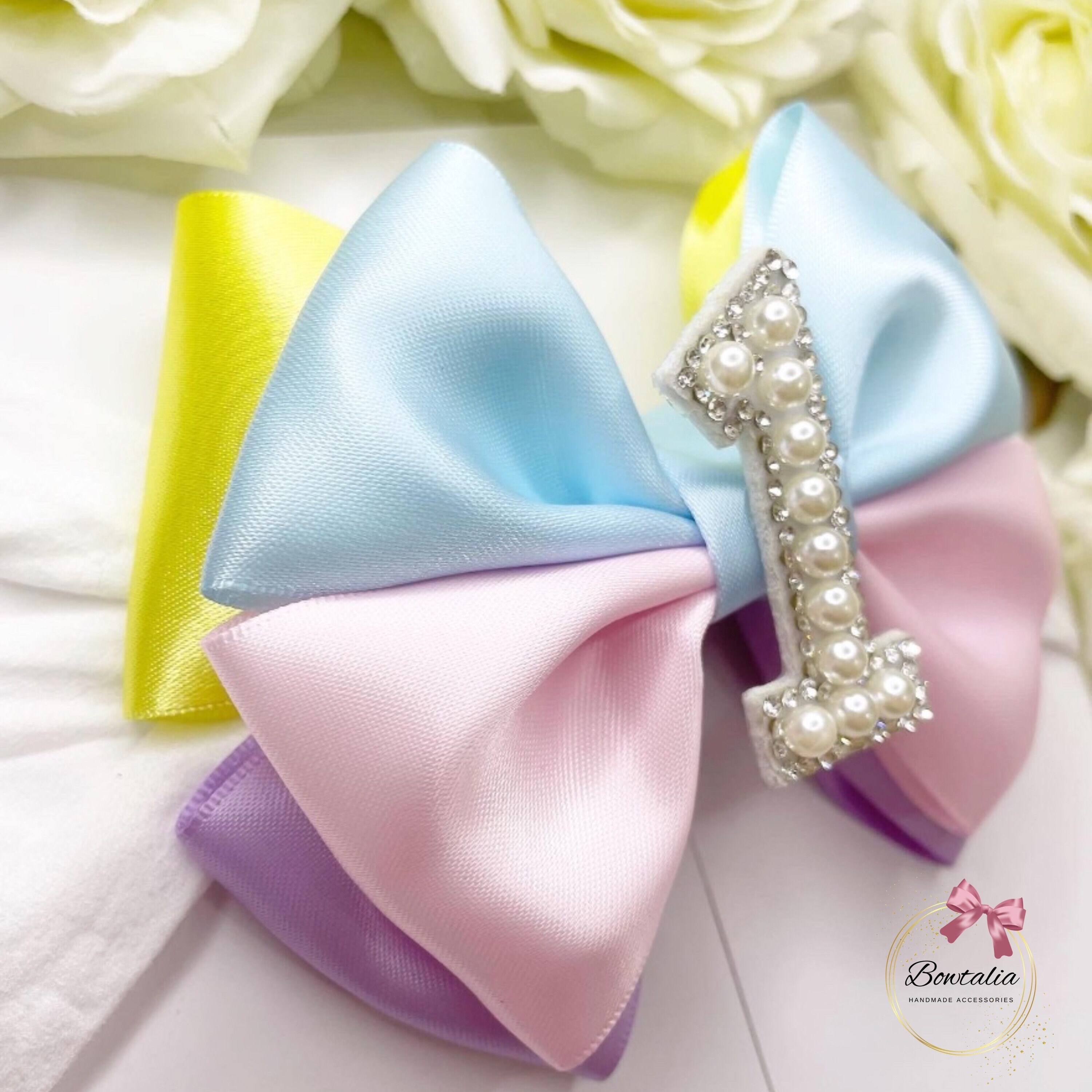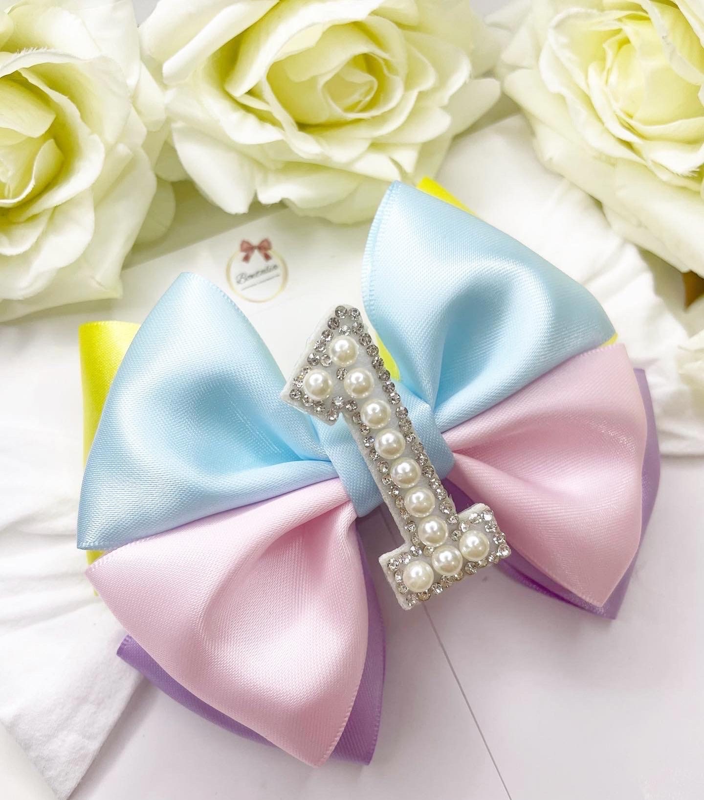 A stunning multi-coloured double layer birthday bow. Perfect for birthdays.