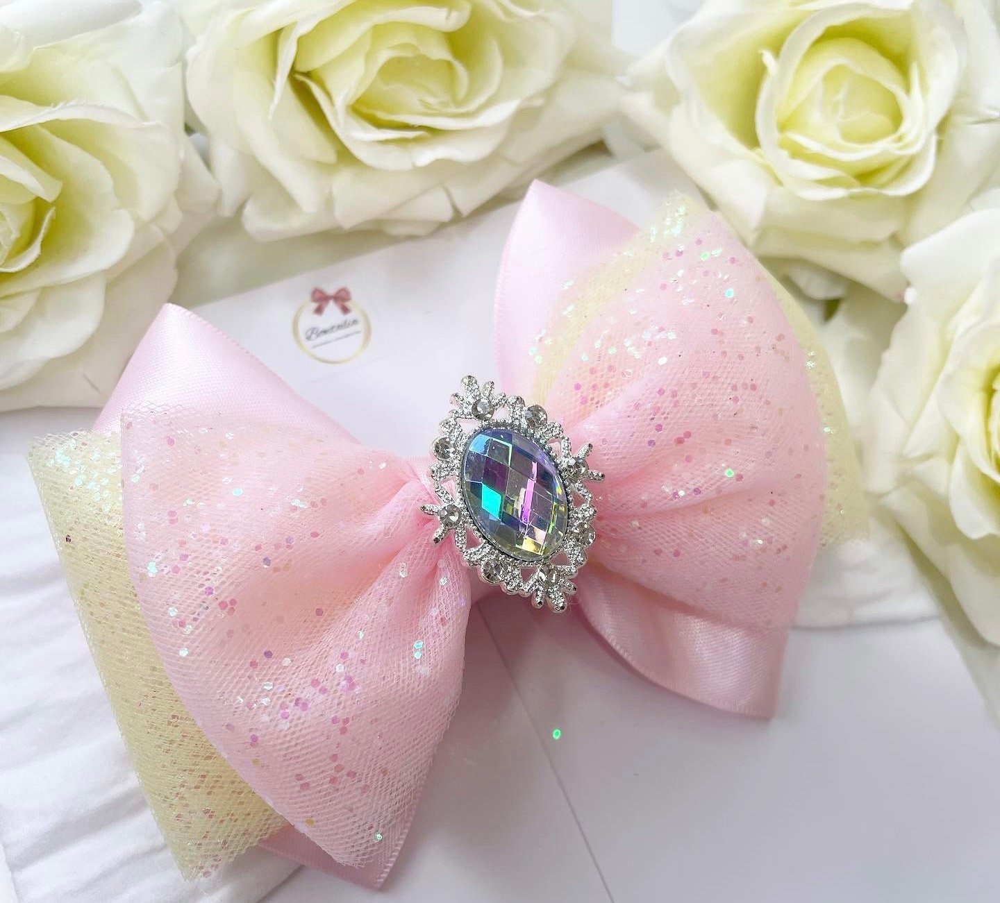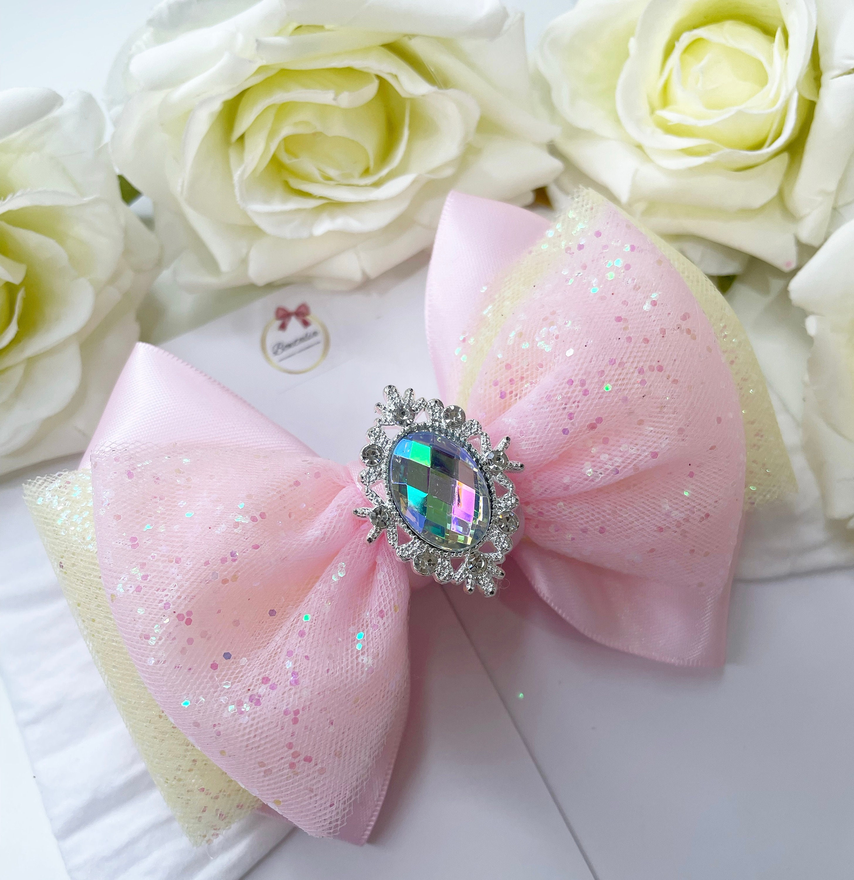 Beautiful layered sparkly bow with a hologram centre attached to a think nylon headband. So pretty to accessorise an outfit or for a special birthday party.