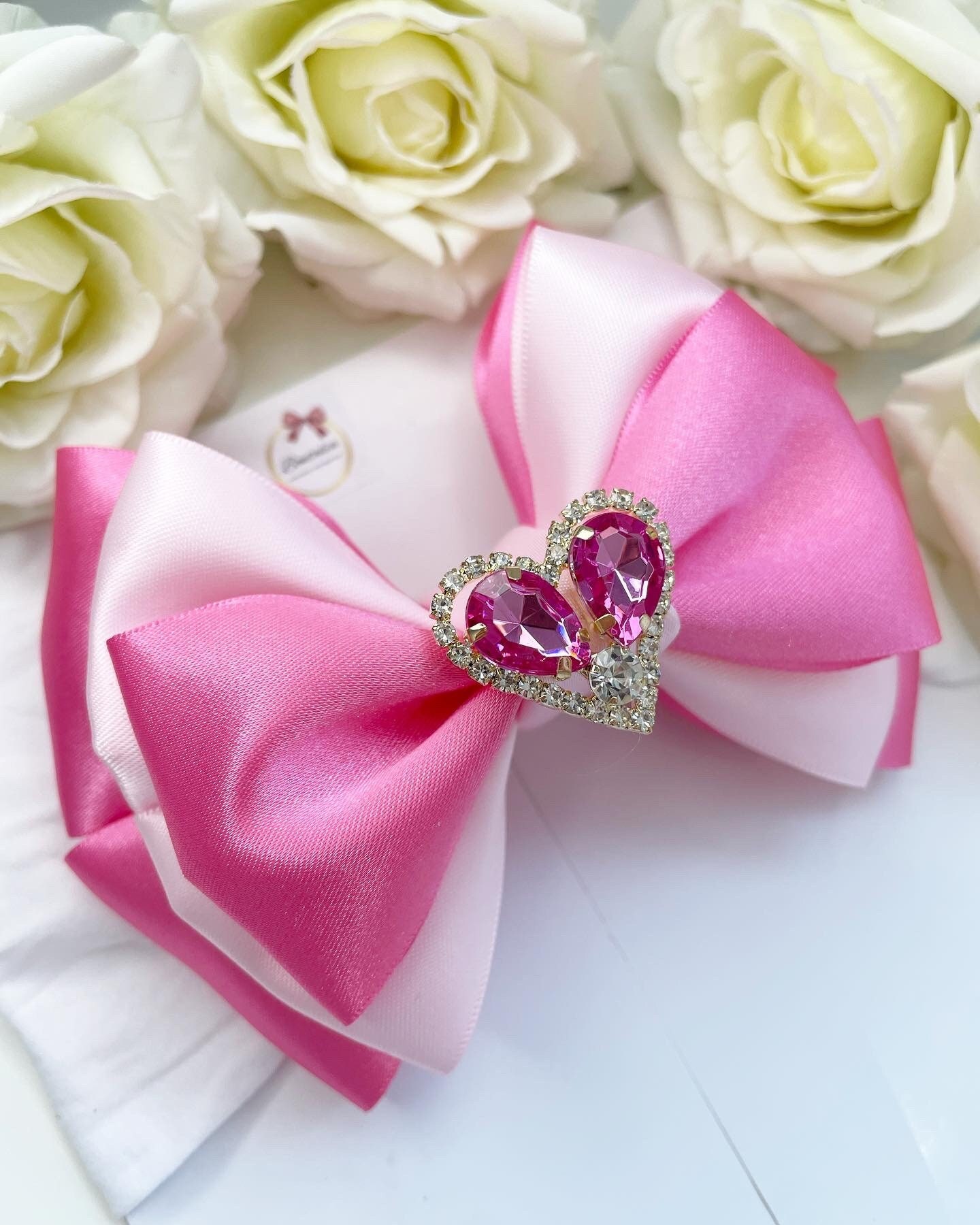 Beautiful light pink and sugar pink layered bow with a heart centre. So pretty to accessorise an outfit or for a special birthday party.