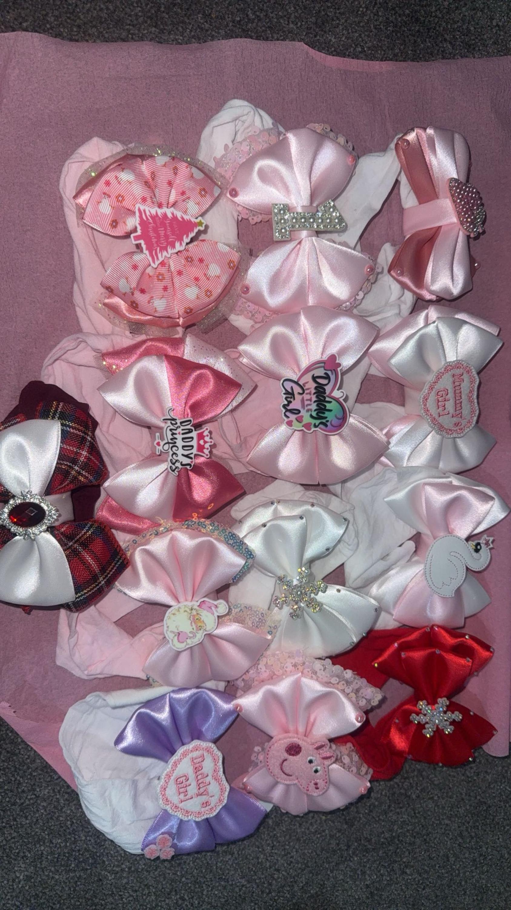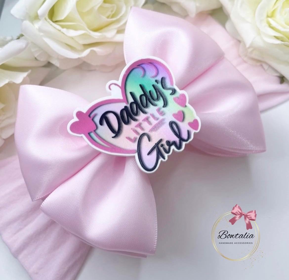 A light pink double layered bow with a 'daddy's girl' centre. Perfect for Father's Day.
