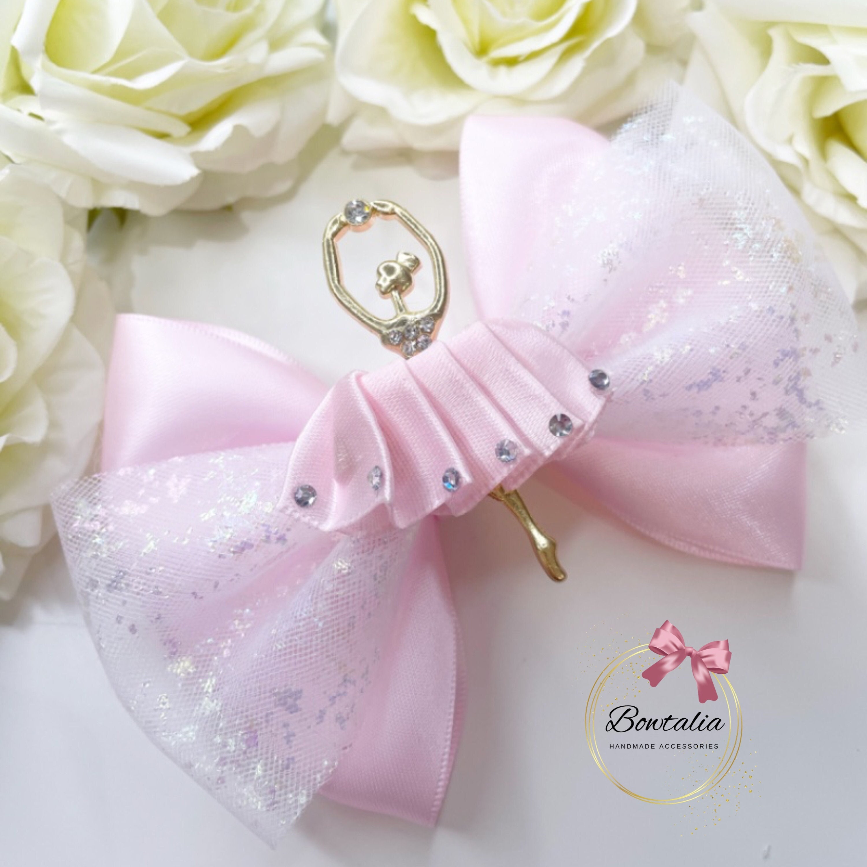 A beautiful pink and tulle ballerina bow. Perfect to match with an outfit.