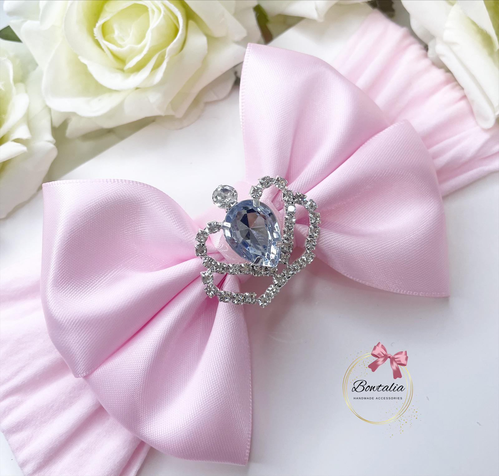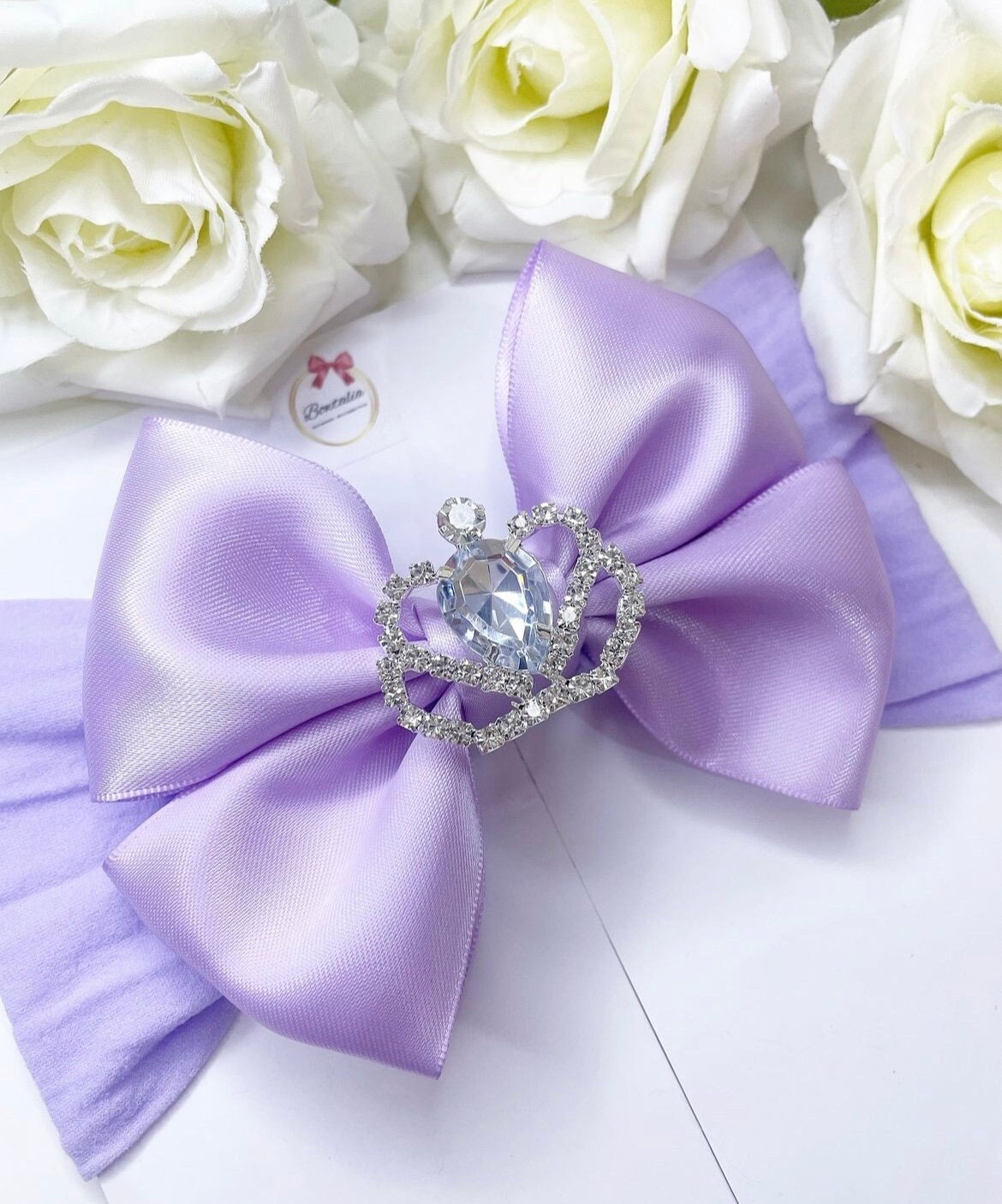 Beautiful lilac bow with a crown jewel embellishment on a thick nylon headband. Perfect for summer and so pretty to accessorise an outfit.