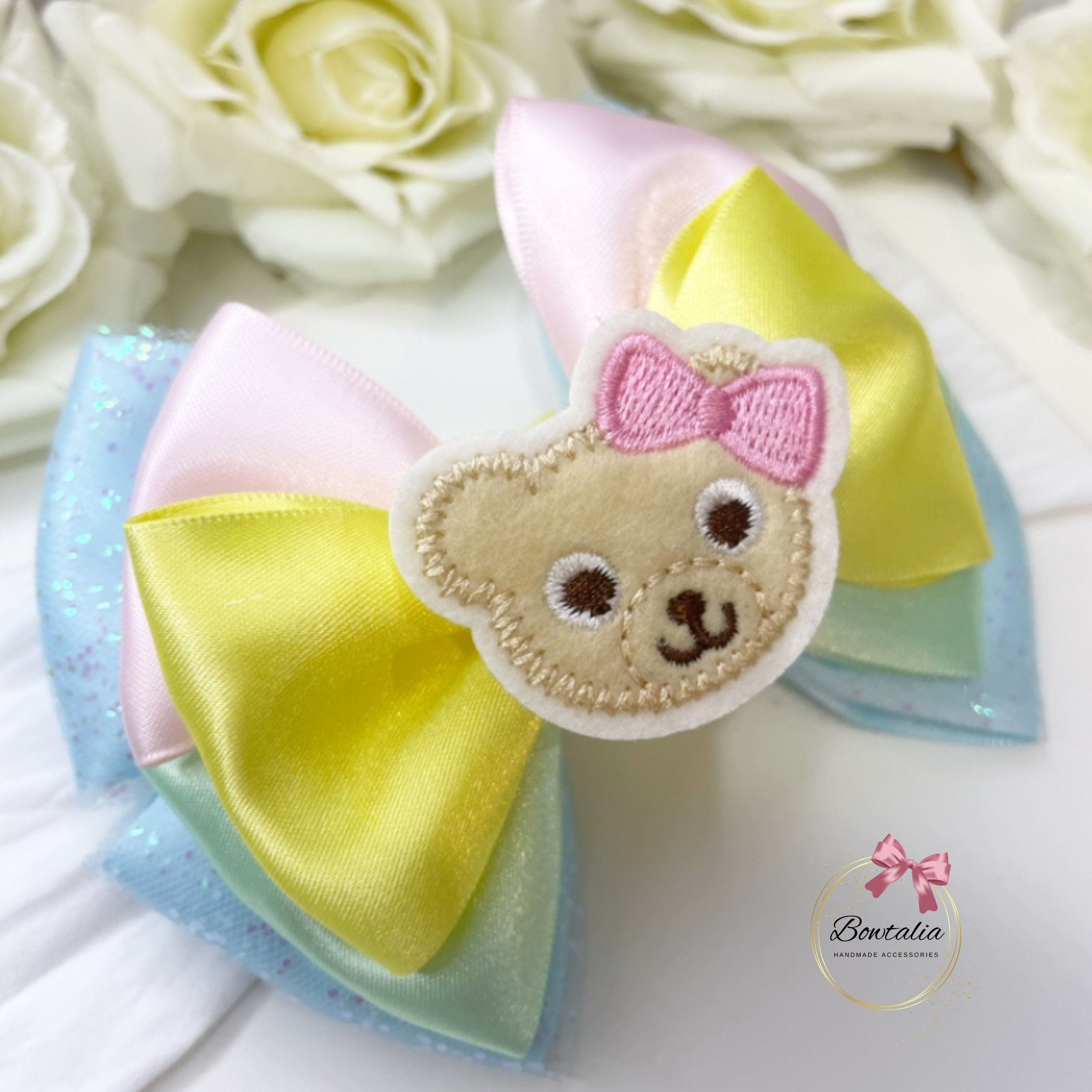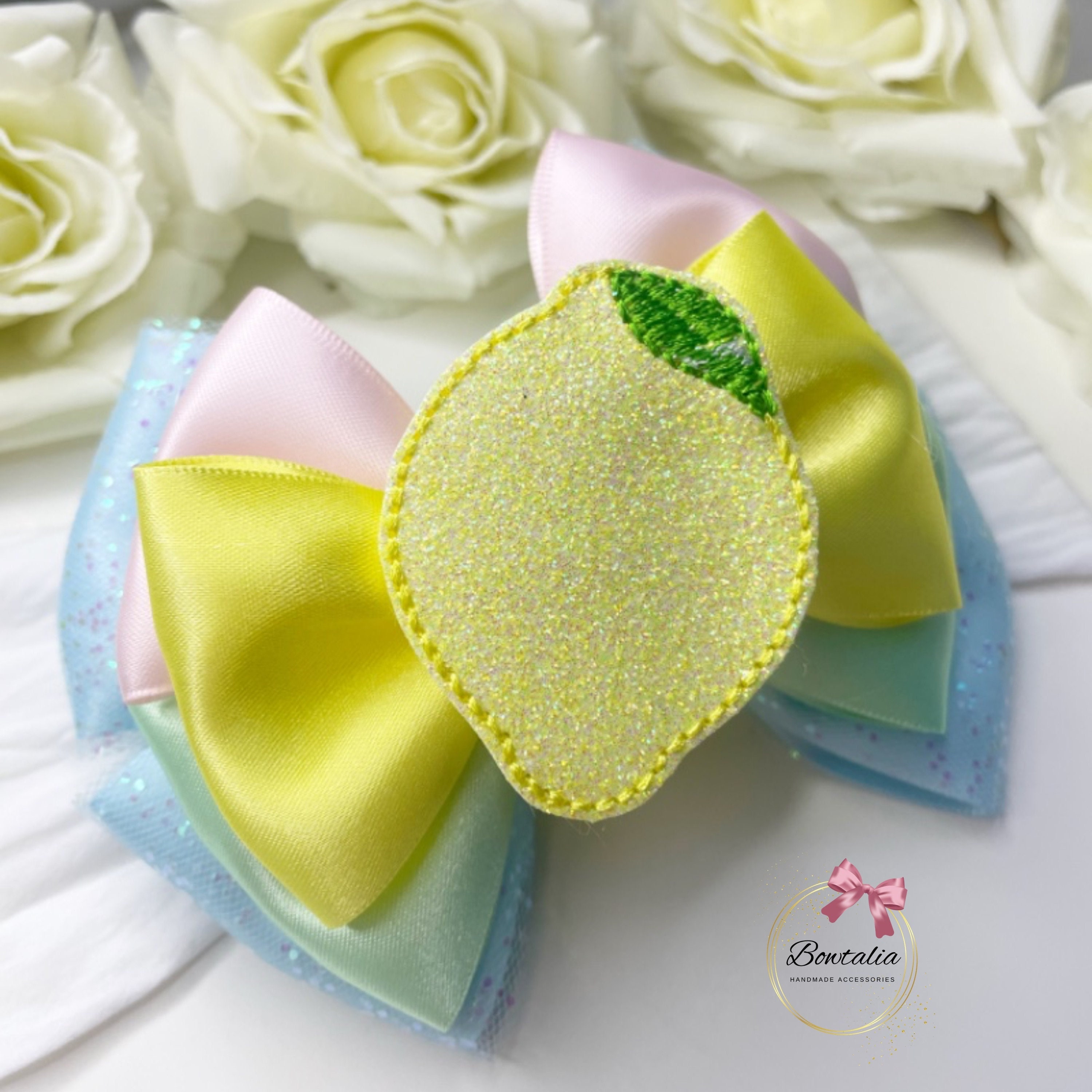Beautiful layered bow with a centre of your choice. Perfect to accessories a summer outfit.