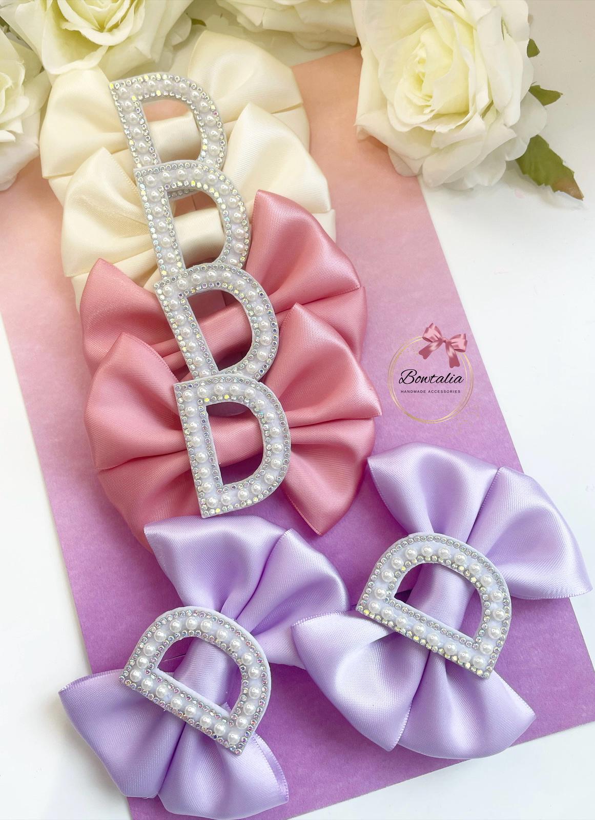 Beautiful handmade bow clips with a pearl initial of your choice. So pretty to accessorise an outfit.