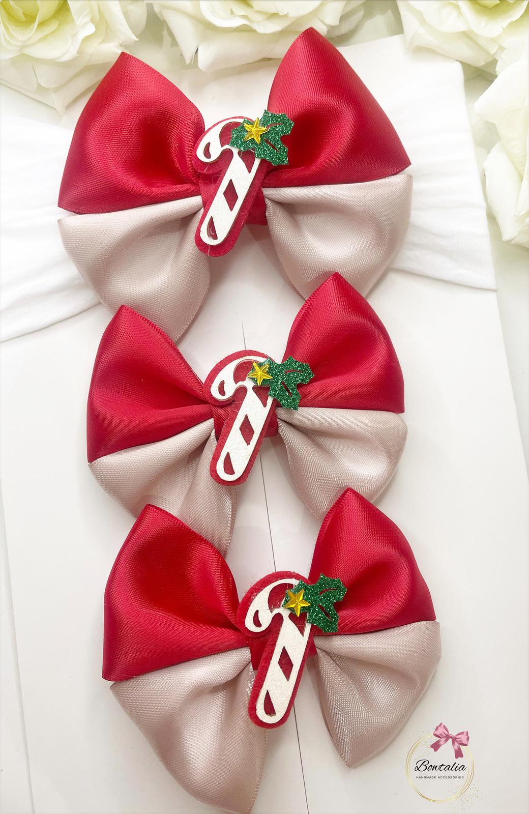Christmas bows with a candy cane centre. Perfect to match with a Christmas outfit.