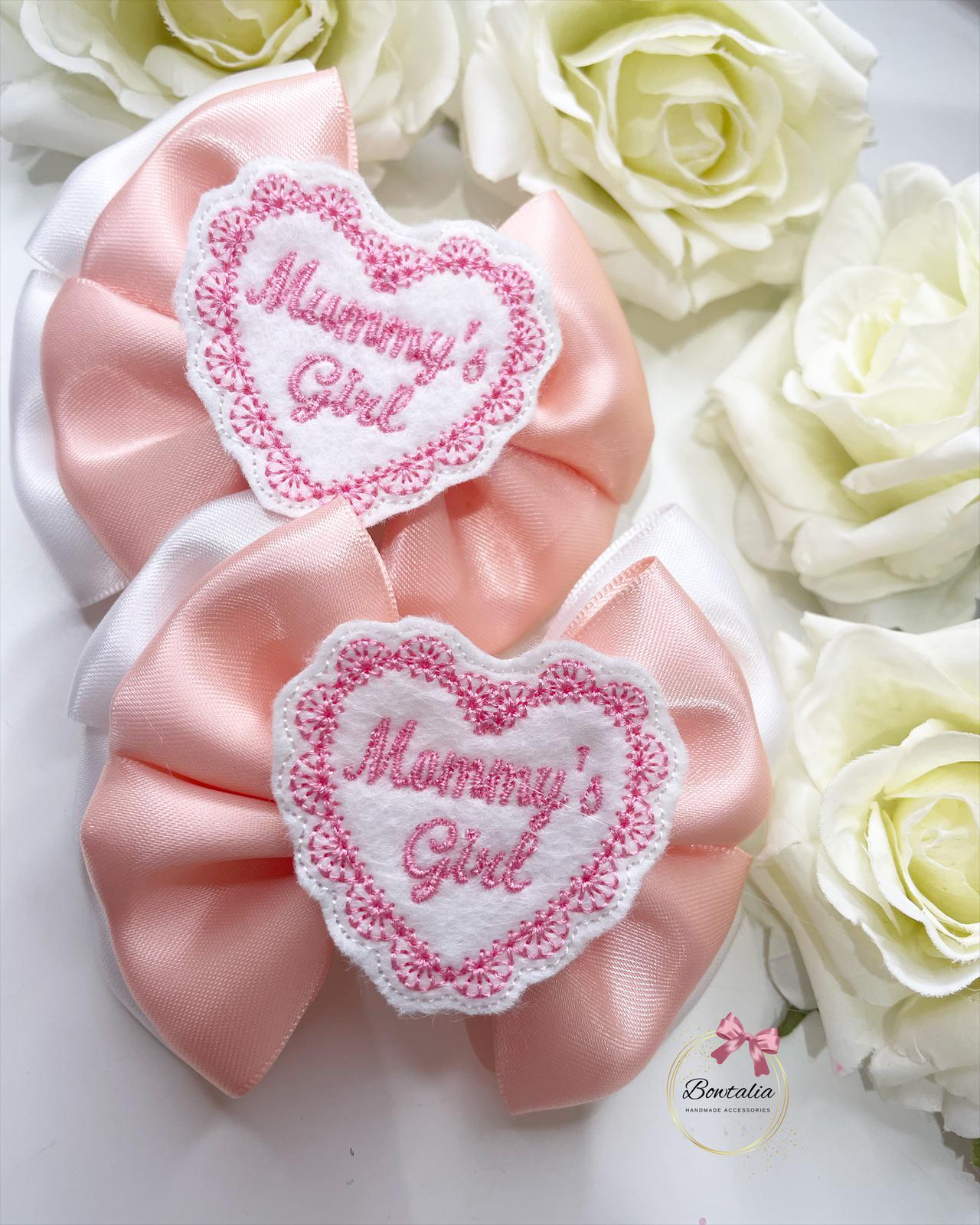 Beautiful double layered bows with a 'mummys girl' centre.