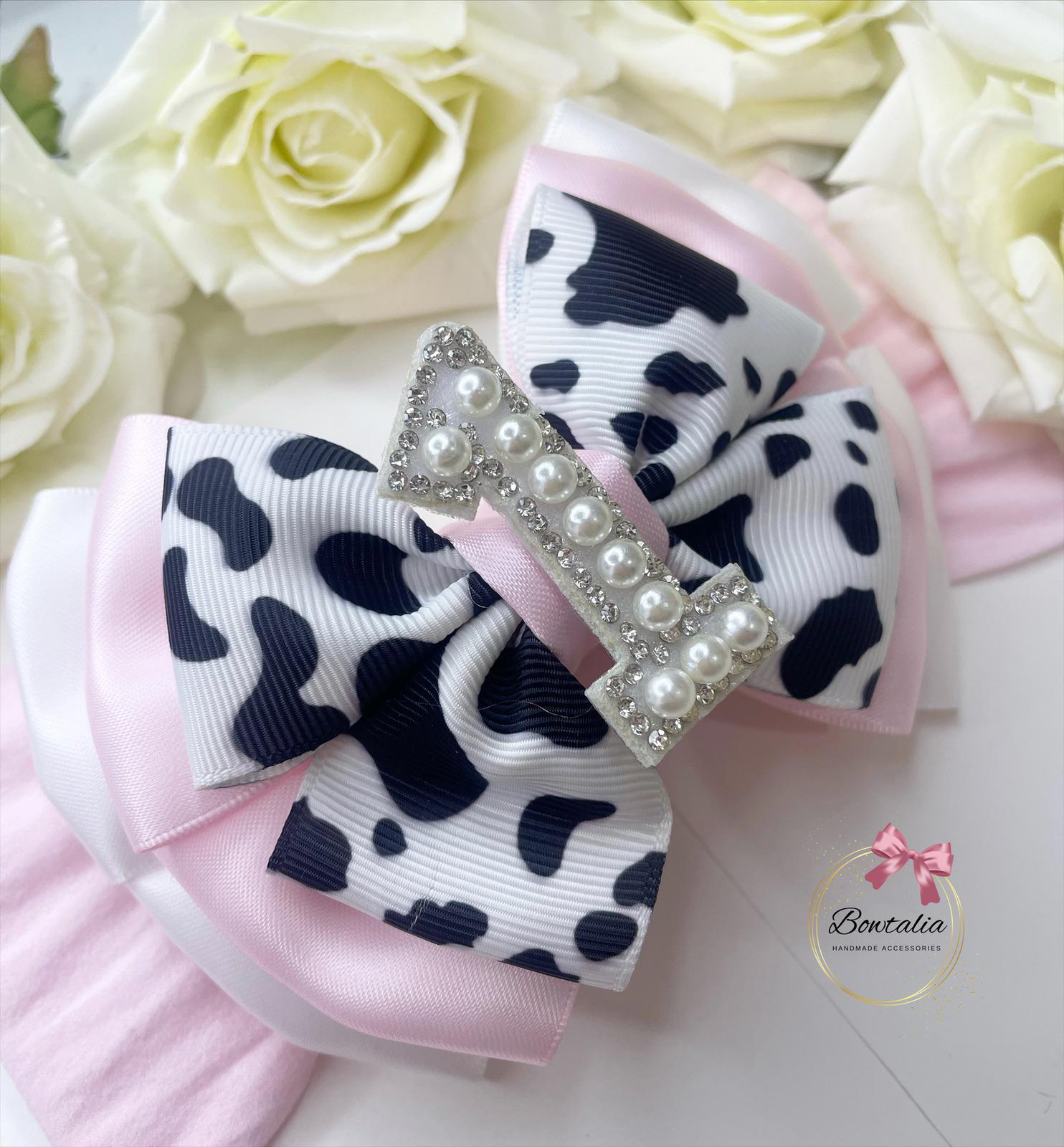 Stunning 3 layer birthday bow attached to a thick nylon headband. Perfect for birthdays.