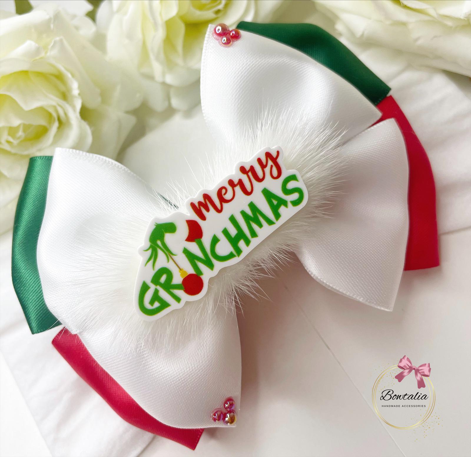 Merry Grinchmas hair bow. Perfect to math with a Christmas outfit.