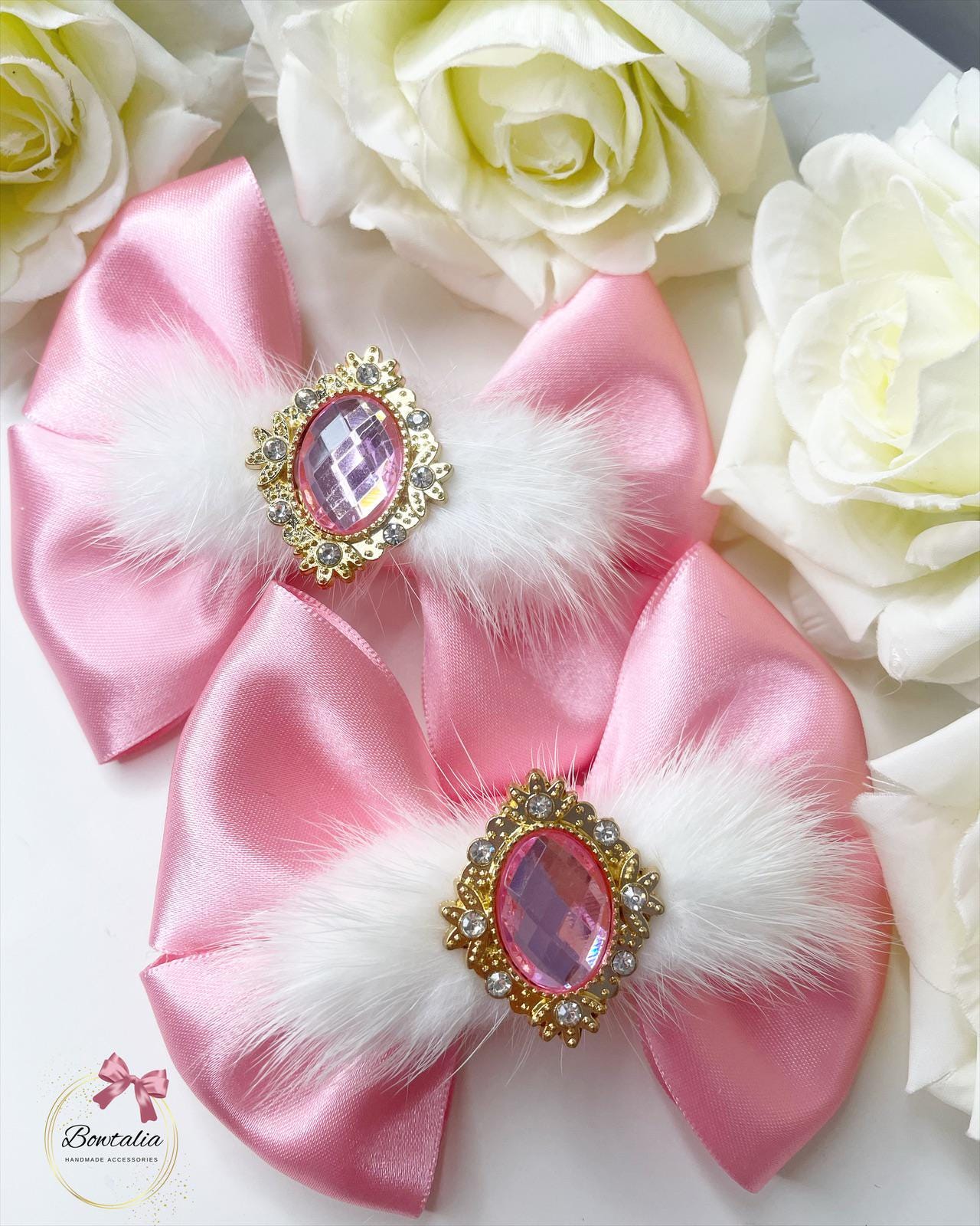 Pink fluffy bows with a pink embellishment - perfect for Christmas!