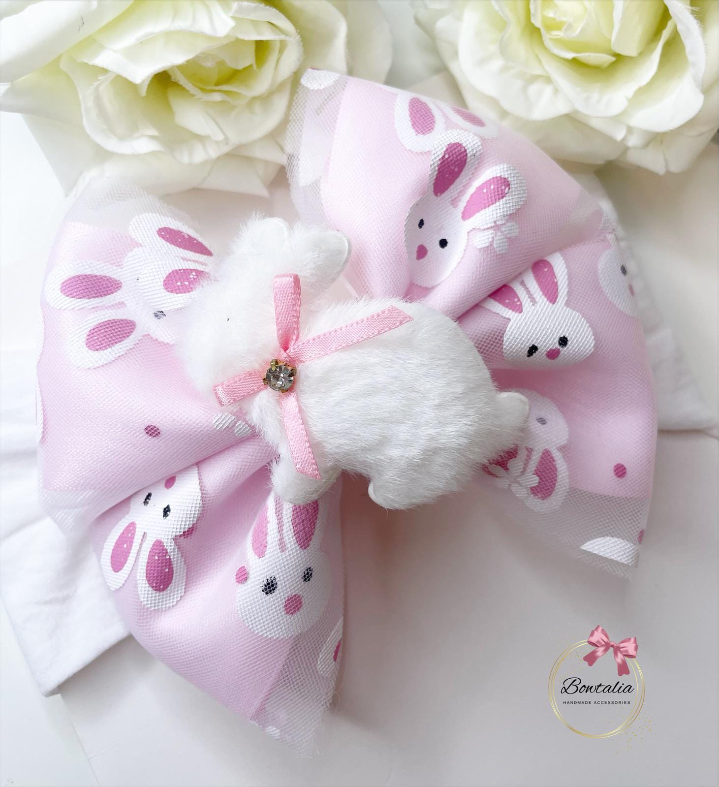Pink bunny bow with a fluffy bunny centre. Perfect for Easter.