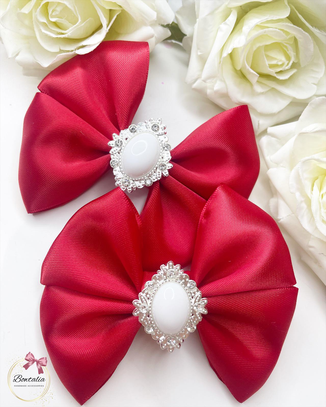 This listing is for one set of matching pig tail clips - the bows are attached to a crocodile clip.