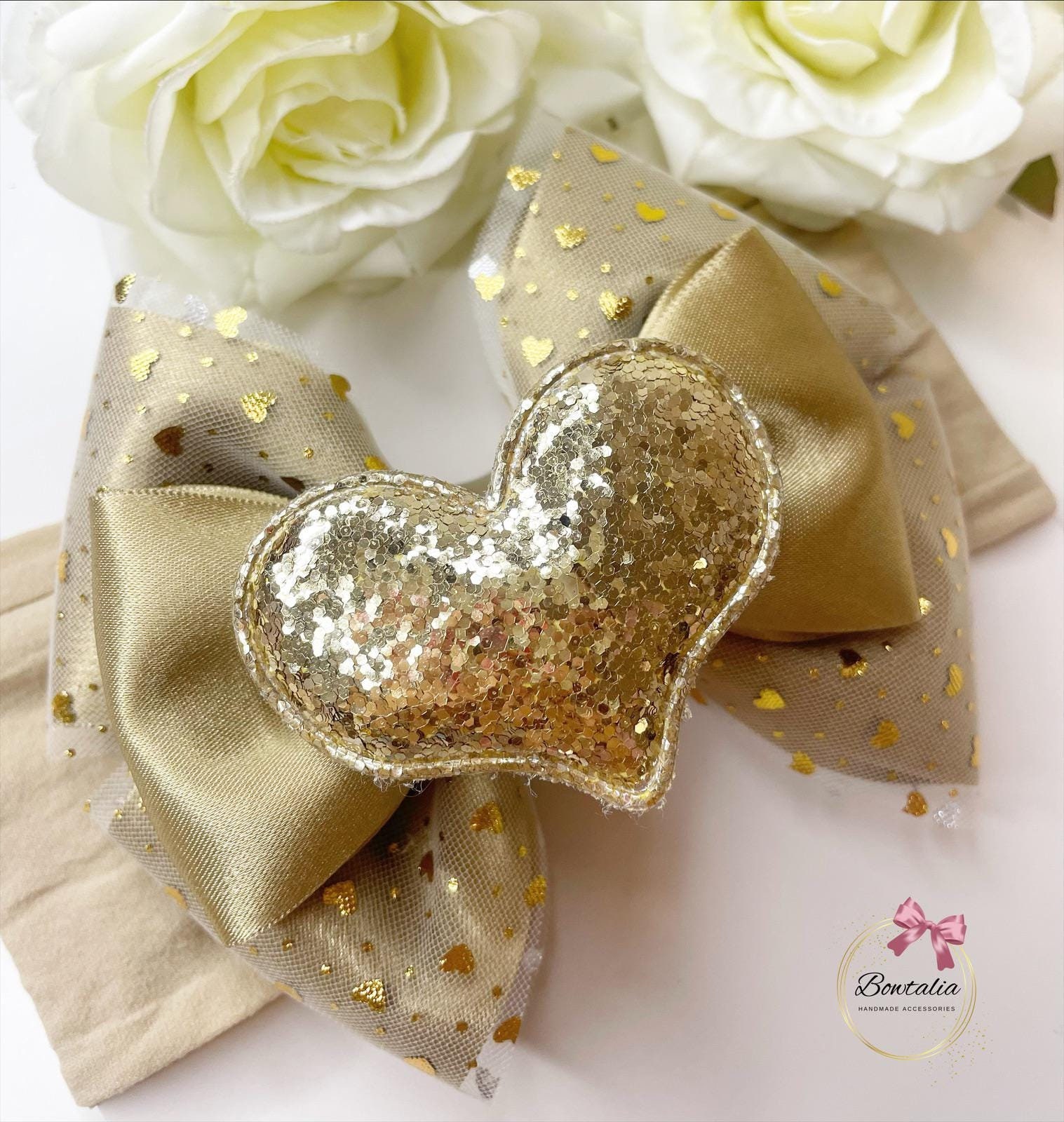 Gold love heart bow - perfect for valentines day.