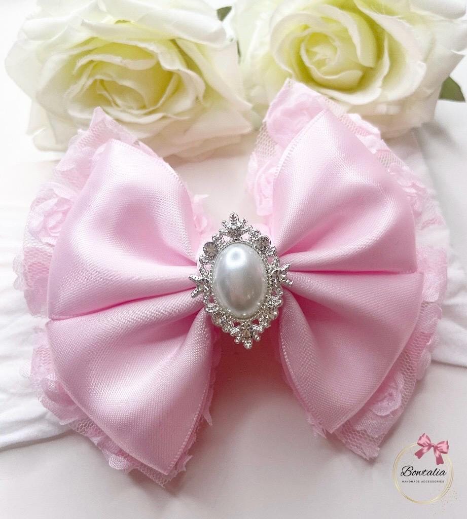 Pink tulle pearl bow