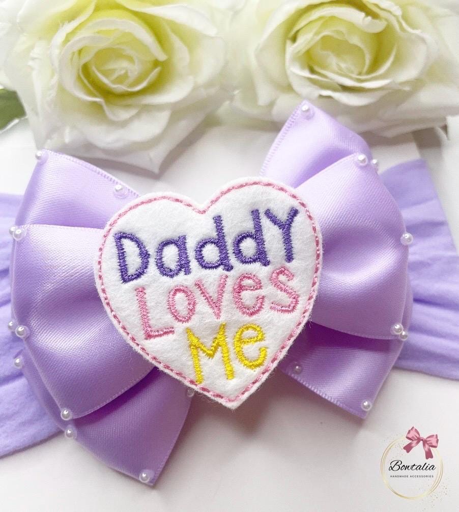 Daddy loves me bow attached to a lilac headband