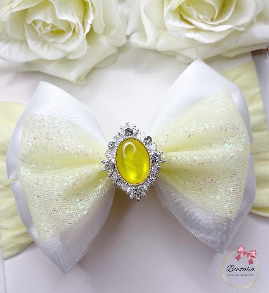 White and lemon tulle bow