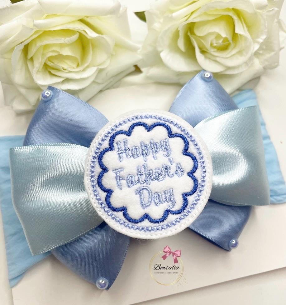 Happy Fathers Day bow attached to a thick blue headband