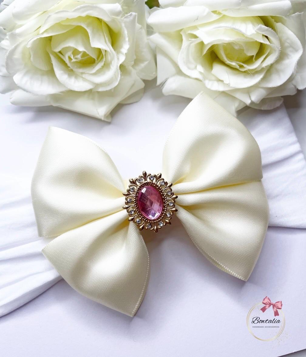 Cream bow with a gold and pink embellishment