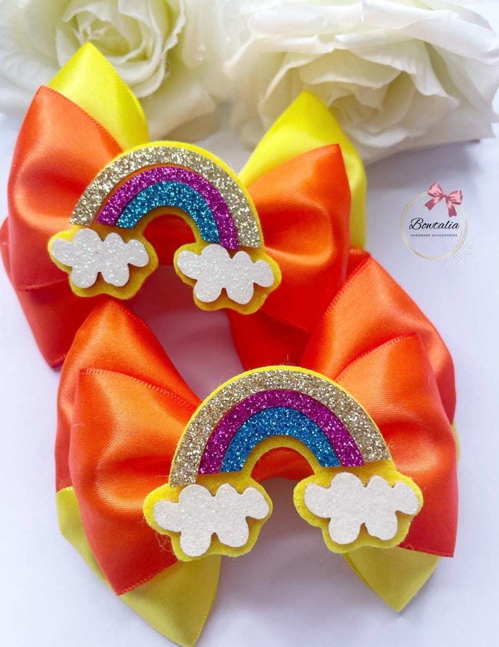 Orange and yellow rainbow bows