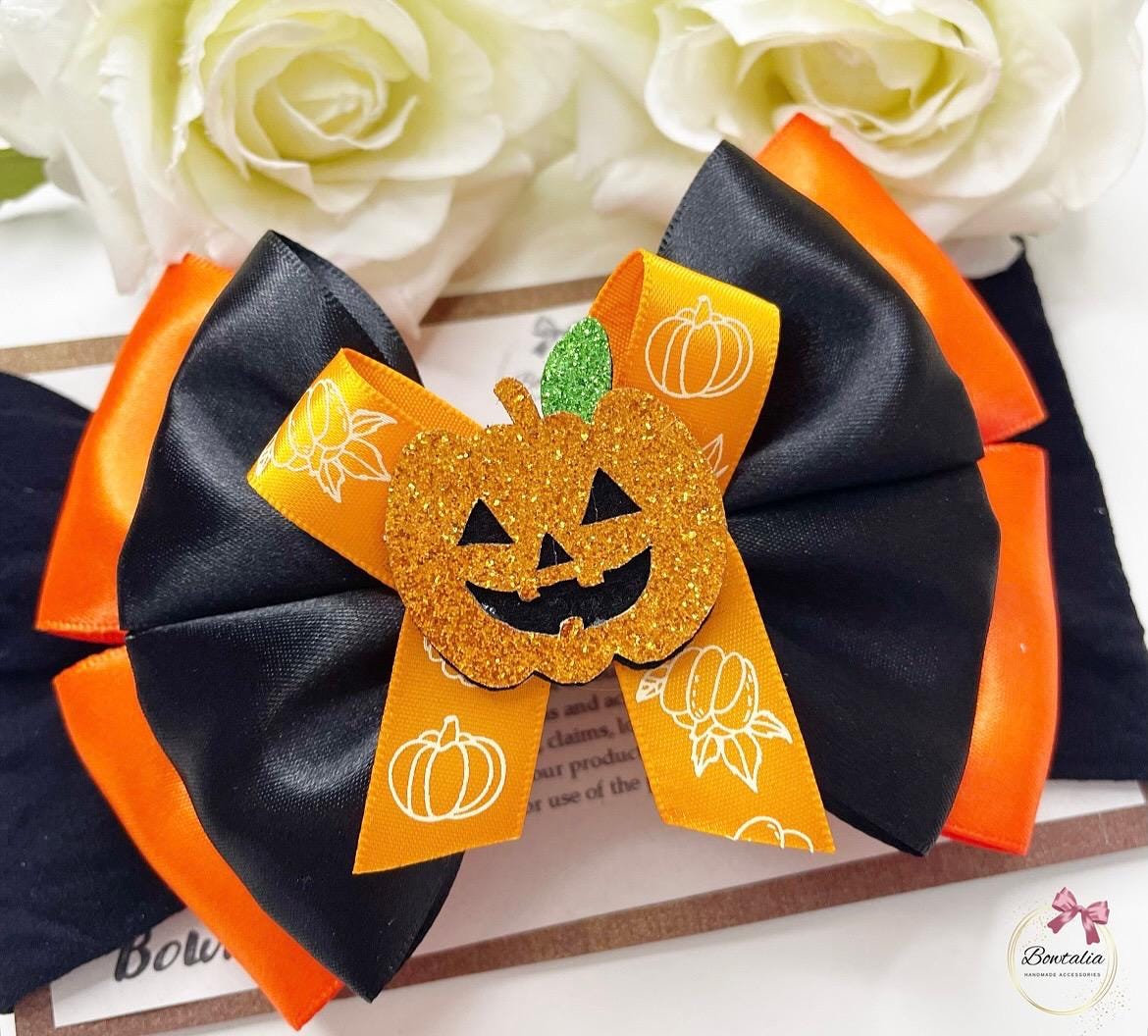 Black and orange halloween pumpkin bow