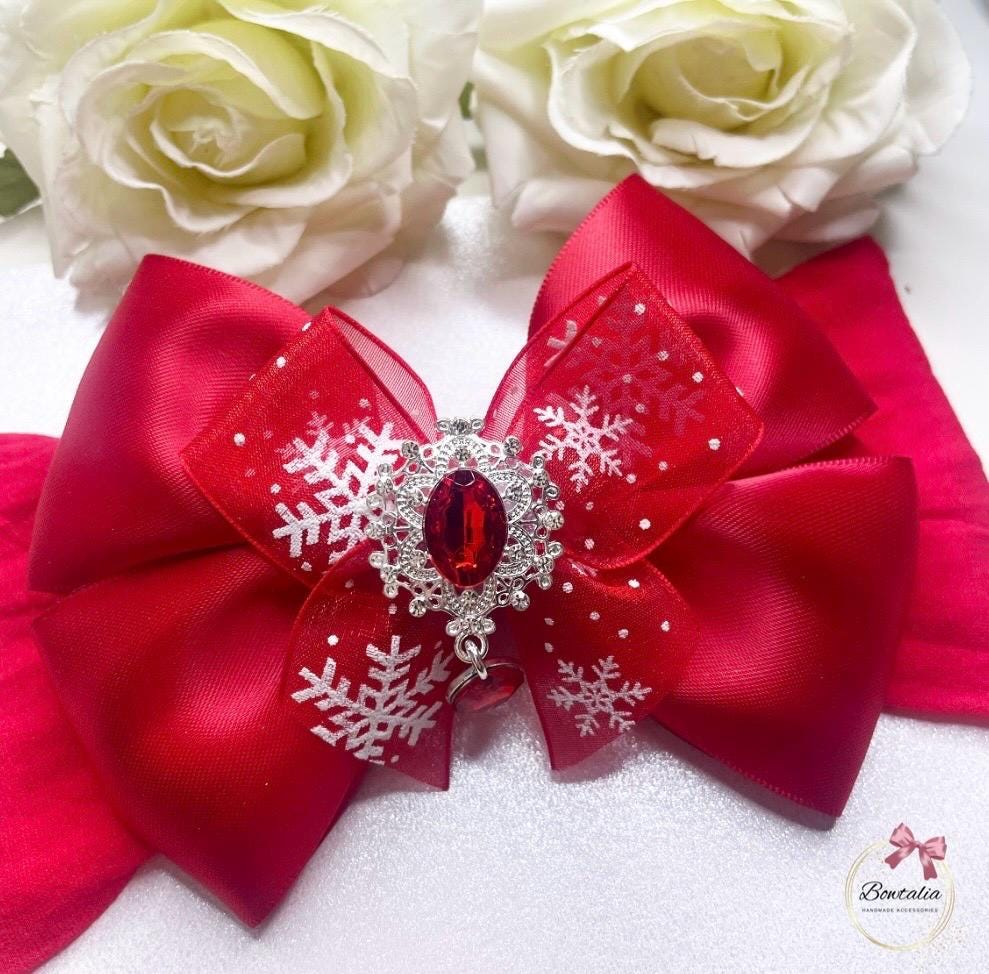 Red snow flake bow