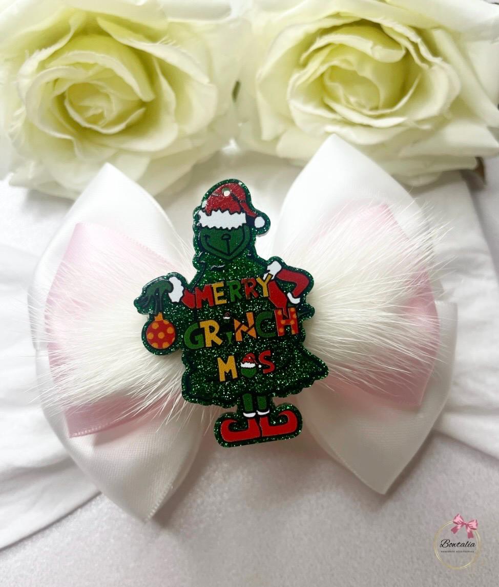 White and pink Merry Grinchmas bow