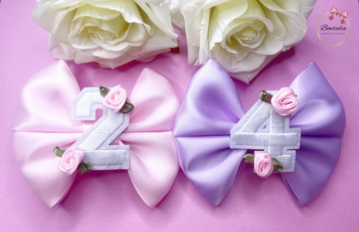 Birthday bow clip with rose detail