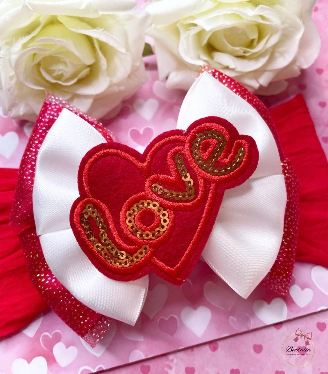 Red and white Valentines Day headband